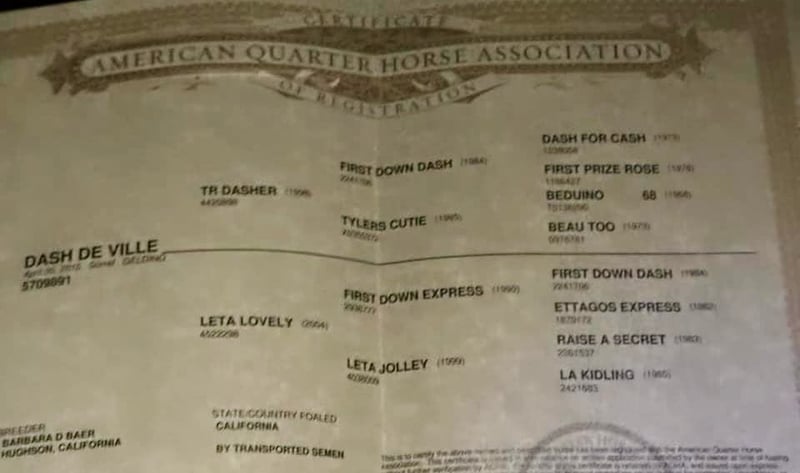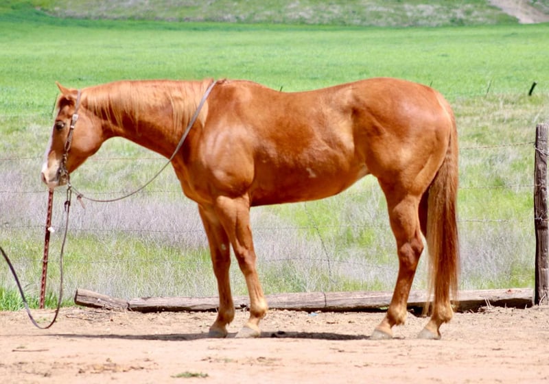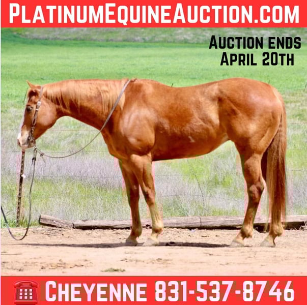 ONLINE AUCTION Place your bids at www.PlatinumEquineAuction.com Starting Bid $3500 Auction ends April 20th, 2025 Need a new saddle? Check out White Rock Saddles on our website or Facebook! Dash De Ville aka Slim is a 2015 AQHA gelding standing at 15.3 HH. He is sired by TR Dasher who was a famous race horse stallion and producer. This big boy is a complete puppy, he loves his people, and is just a dream to be around. He is the jack of all trades! Slim is patterned on the barrels, has a super easy to ride, calm style. He hunts his barrels and is safe for all levels, as he only goes the speed you want! He’s been extensively used out on the trails for the beginner riders, and is always calm and sane. For a big horse Slim is broke, he has a good soft feel, rocking chair lope, and a low collected headset. You can ride slim with a pinky on the rein and he will go anywhere you want. He has perfect circles in the arena, a good stop and moves respectfully off leg pressure. He will yield both his shoulders and hindquarters. Slim never gets excited, or spooked. He’s been hauled to various places and never acts differently. If you want a horse with personality look no further. Slim smiles for treats, is always in your pocket and will greet you at the gate every time. He has loads of experience in and out side of the arena and will accommodate any discipline! Slim stands quietly, great for farrier, and loves to bathed. You can clip his ears, face, and body without a flinch. He loads nicely and hauls quietly. He’s been in box stalls, pastured with multiple horses, and penned next to others, he is perfectly content in any situation. Slim is adaptable to every environment and is ready for his new home, where we are sure you will fall in love with his personality and talent, just like we have! He is located in Bitterwater, CA. For more info please contact Cheyenne Rey at 831-537-8746. ONLINE AUCTION Place your bids at www.PlatinumEquineAuction.com Starting Bid $3500 Auction ends April 20th, 2025 Need a new saddle? Check out White Rock Saddles on our website or Facebook!