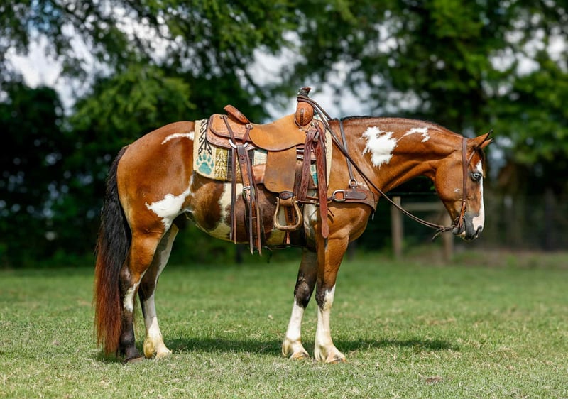 ONLINE AUCTION Place your bids at www.PlatinumEquineAuction.com Starting Bid $3500 Auction ends August 3rd, 2025 Need a new saddle? Check out White Rock Saddles on our website or Facebook Benji is a 10 year old gypsy cross gelding, standing 14.3 hands tall and is as flashy as they come! If your looking for a horse that combines beauty, brains, and a gentle temperament? Look no further! This eye-catching gelding boasts the striking color of a Paint with the sturdy build and flowing feathering of a Gypsy Vanner! Benji has been trail rode all over, he goes wherever he is asked, crosses the creeks, logs and bridges great! He has also been around cattle for basic ranch work such as gathering and penning. Benji has also spent a little time in the arena, he is soft in the face, he has a willing attitude and smooth gaits. Whether you’re looking for a trail partner, a dressage prospect, or a stunning addition to your family, this gelding has the potential to excel in any discipline. Don’t miss the opportunity to own this exceptional crossbred gelding! If you would like to schedule a time to come meet and ride Benji , or have any other questions about Benji feel free to reach out! ☎️ Rachel , 605-370-4644. Benji is located in Rusk TX, we can also help arrange shipping nationwide! ONLINE AUCTION Place your bids at www.PlatinumEquineAuction.com Starting Bid $3500 Auction ends August 3rd, 2025 Need a new saddle? Check out White Rock Saddles on our website or Facebook