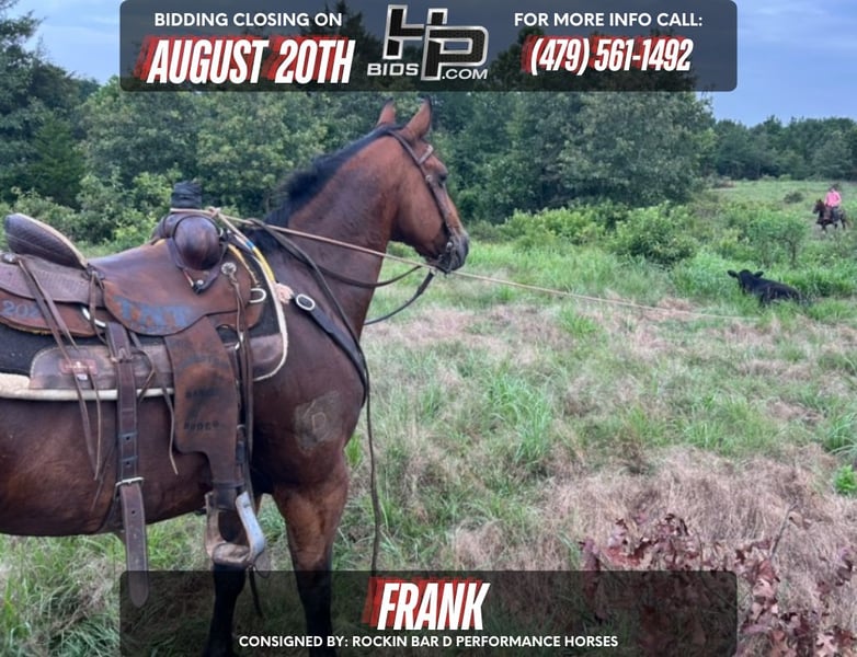 🔥 Happening NOW thru August 20th - Available EXCLUSIVELY on HP Bid’s website! For more details and to register visit: https://hpbids.com CONSIGNOR CONTACT: Rockin Bar D Performance Horses - (479) 561-1492 LOCATION: Ozark, AR BREED: AQHA REGISTERED: Yes REGISTERED NAME: Zip Chip Bar COLOR: Bay HEIGHT: 14.2 AGE: 12 GENDER: Gelding Meet Zip Chip Sarge, aka “Frank.” This 12 -year-old bay gelding is the kind that’s hard to find — sound, broke, and ready to go to work or hit the arena. he can compete at a professional level . he is an Elite Horse that is big boned and solid solid . 🔥 Highlights: • Finamanal Pickup Horse • can Pull Anything he is hooked to ✔️ Hauled and worked at the sale barn — drug calves, sorted, and seen the real deal. ✔️ Been ranched on — crosses water, bridges, steep hills, and rough country with ease. ✔️ competed and won money on the head side — has plenty of pull. ✔️ Hauled to events — calm, dependable, and seasoned. • will cary flags and rides double . 🛠️ Solid Skills: ✅ Loads, bathes, hauls, and stands tied like a pro. ✅ Easy to get along with — no funny business. ✅ Good-minded with a great handle. 📜 AQHA Registered (5651370) Bloodlines include Kay Cee Leaguer, Zips Famous Amos, and Red Jet Set. Franklin is the kind of horse you’ll want to keep. He’s ready to be someone’s go-to gelding — whether you’re ranching, roping, or trail.