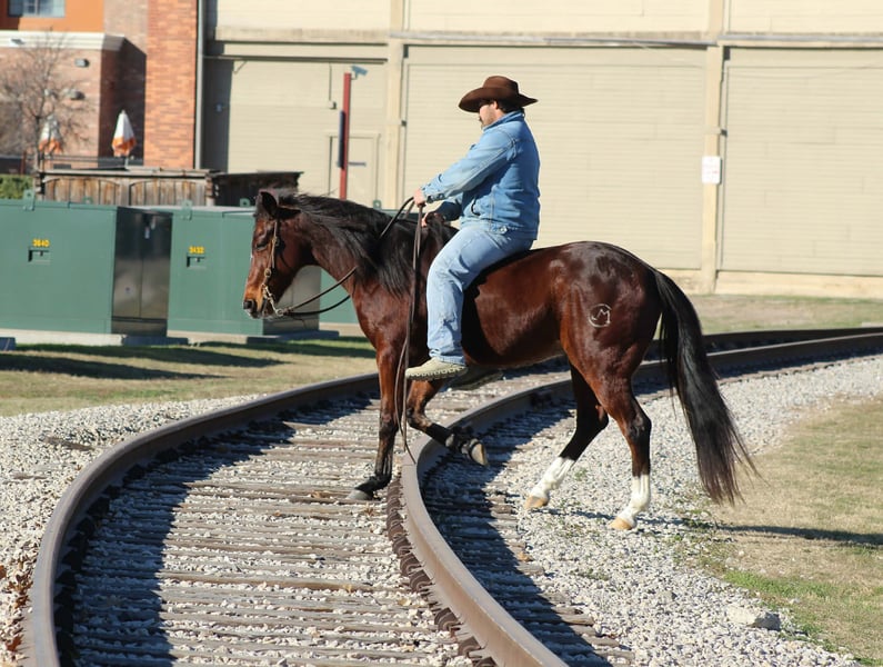 "AVAILABLE ON ONLINE HORSE AUCTION AT www DOT PlatinumEquineAuction DOT com BIDDING OPEN NOW thru SUNDAY | FEBRUARY 15TH! *Final price will be determined on auction site* CONSIGNOR CONTACT INFO: M $ Performance Horses 661-817-9120 LOCATION: Stephenville,TX Romeo is a 12-year-old Quarter Horse standing 14.2 hands, and he’s the kind of horse that makes you fall in love the moment you swing a leg over. He is kind, honest, steady, and incredibly willing, the type that takes care of his rider every single ride. He comfortably rides English and Western and is as versatile as they come. Romeo loves to hack around the cross-country course, cruises quietly down the trail, and confidently crosses water, logs, bridges, and tarps without hesitation. He has traveled many miles on busy city trails all across Texas and takes traffic, crowds, and loud noises completely in stride. From trail rides to the Fort Worth Stockyards, Romeo handles it all with calm confidence and class. In Western tack, he is absolutely stunning with his long, thick mane and tail and is beautifully fancy broke. He neck reins effortlessly, moves softly off your leg, has a pretty spin both directions, and a solid stop. His buttery-smooth walk, trot, and rocking-chair lope make every ride enjoyable. Romeo is truly for everyone — from small cowboys and cowgirls to adult riders of any age. He has safely packed beginners through advanced riders, and he’s the kind you can hop on bareback in a halter and wander off into the sunset. He is SAFE, GENTLE, EASY, and FUN, the horse you look forward to riding every single day. The cool part about him he does have some go when needed. This is the kind of horse you can climb on in the coldest January mornings or the hottest August afternoons, knowing he will be the same trustworthy, kind soul every time. No drama. No surprises. Just a horse that stays true, honest, and dependable. Romeo isn’t just a horse — he’s a partner, a confidence builder, and a best friend. Horses like him are incredibly rare, and once you meet him, you’ll understand why he’s so hard to forget. He is UTD on farrier, teeth and vaccinations. We are open to anyone interested in him to schedule a time to come see him or if you can’t make it schedule a FaceTime showing to see him. Contact M $ Performance Horses Michell 661-817-9120. If you need help with transport don’t hesitate to ask we have a list of reputable haulers that can get him safely to your doorstep WORLD WIDE including, Alaska , Mexico, Hawaii, Canada and anywhere in between. Located in Stephenville, Texas