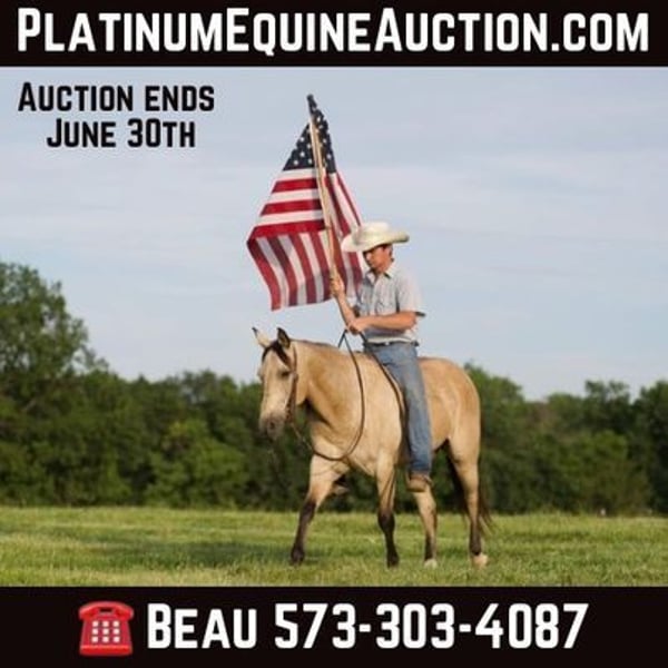 ONLINE AUCTION PLACE YOUR BIDS AT PLATINUMEQUINEAUCTION DOT COM $3500 STARTING BID AUCTION ENDS JUNE 30TH Ace is a beautiful 10 year old aqha registered buckskin gelding that stands 14.3 hands tall and has great conformation. He has been trail ridden absolutely everywhere! He goes anywhere and crosses anything you point him at. He is quiet on the trail and rides out great alone or in a group and doesn’t care if he is in the front middle or back. He is traffic safe and has been around all types of farm animals and wildlife. He has been on many overnight trips and does great! Ace also does great in the arena and would excel in the ranch riding classes if you choose to take him that way He is an honest good minded gelding and does well with time off. He is a blast to ride and loves to please! -no spook -no buck -no bite/kick -Loads/Unloads great -stands good for farrier -stands good for clipping -does great in a stall or out on pasture -does well with other horses -utd on worming and dental work -100% sound -no old injuries or scars Any other questions feel free to give me a call or text Beau Slaughter 573-303-4087 Located in Canyon, TX.