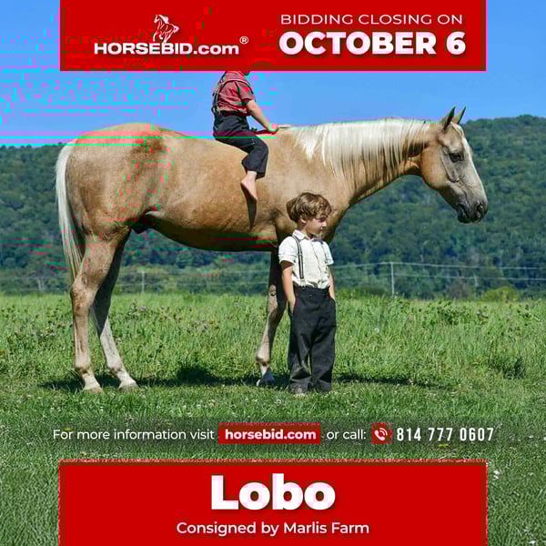 🍂 𝓐𝓾𝓽𝓾𝓶𝓷 𝑨𝑳𝑳 𝑺𝑻𝑨𝑹 𝑳𝑰𝑵𝑬𝑼𝑷 🍂 Happening now thru MONDAY | OCTOBER 6th - Available EXCLUSIVELY on HorseBid's website! For more details and to register visit: www.Horsebid.com CONSIGNOR CONTACT: Marlis Farm 814 777 0607 LOCATION: Rebersburg PA BREED: Quarter Horse REGISTERED: No COLOR: Palomino HEIGHT: 14.3 AGE: 11 GENDER: Gelding Lobo as we call him is a 14.3 hand palomino quarter horse gelding that is well trained and fun to ride. Lobo neckreins, sidepasses and is responsive and soft in the bridle. He is a seasoned trail horse, he goes over logs, through water and wherever you point him with no hesitation. Lobo is the type of gelding that is eager to please and takes to whatever you put in his path, he has been pasture roped off of and been used to push cattle and check fences. We have exposed Lobo to bouncy balls, flapping tarps and numerous obstacles and he dont mind any of it. Lobo rides the same everyday whether you ride him everyday or once a month . Lobo does well inside or turned out in a mixed herd and meets you at the gate. He stands to be tacked and mounted and for the farrier. Lobo sells safe, sound and ready to move into his forever home. For more info or to come meet Lobo you can call Mark 814 777 0607 We can help arrange shipping anywhere!!