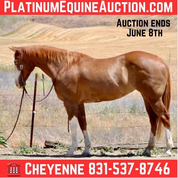 ONLINE AUCTION Place your bids at www.PlatinumEquineAuction.com Starting Bid $3500 Auction ends June 8th, 2025 Need a new saddle? Check out White Rock Saddles on our website or Facebook! Patches is the prettiest, thickest mare you’ll see on this side of the Mississippi River. She is as wide as she is tall, has the most beautiful blue eyes and is just as dreamy to ride as she is to look at! Standing at a perfect 15HH and prime age of 11 years old, she is ready to be anyone’s perfect partner. Patches has been rode all over the central coast trails! She’s been in steep, rocky country and is very sure footed, never misses a step and has stamina to go all day. She’s got the easiest handle, neck rein with a pinky touch, light collected stop and reverse. She moves off leg pressure and is smooth in her gait transitions. She lopes very pretty, and correct circles. Patches has been roped off of in the arena and has taken to cattle very nicely. She seems to really enjoy having a job. She would excel in ranch versatility, or be the best trail companion. Patches has zero spook, buck, or bite. She is always well behaved and a pleasure to be around. She is confident in all aspects and capable to take care of her rider! Patches is great for the farrier, hauls great, and stands tied. Patches can do anything you’ll ask from drill team, trail course, all the way to ranch work! She really is a jack of all trades! Patches has zero issues, and is ready to complete your family! For more info or to schedule a time to come see her. Please contact Cheyenne at 831-537-8746. She is located in Bitterwater, CA. ONLINE AUCTION Place your bids at www.PlatinumEquineAuction.com Starting Bid $3500 Auction ends June 8th, 2025 Need a new saddle? Check out White Rock Saddles on our website or Facebook!