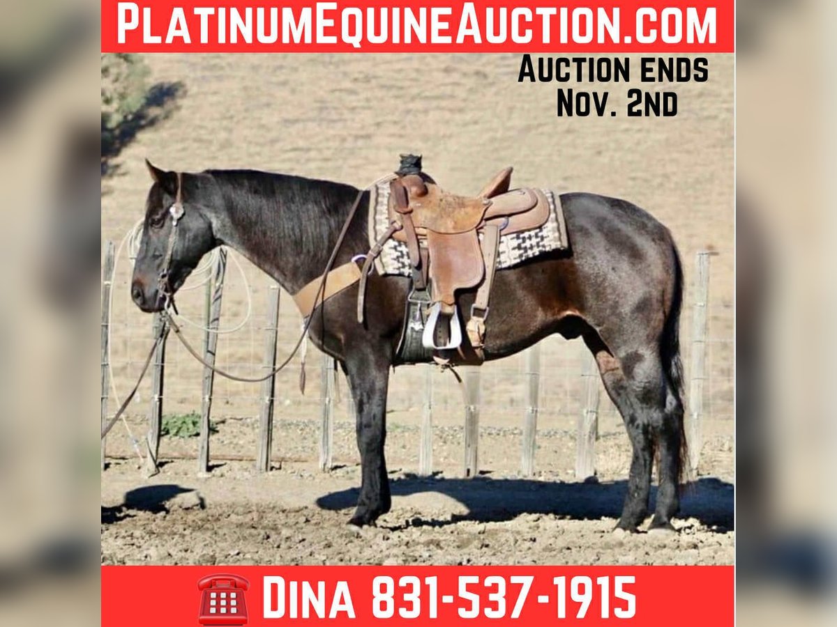 ONLINE AUCTION Place your bids at www.PlatinumEquineAuction.com Starting Bid $3500 Auction ends November 2nd, 2025 Need a new saddle? Check out White Rock Saddles on our website or Facebook Blue Topaz – Steady, Seasoned, Ranch and Trail Ready… Meet Blue Topaz, the 11-year-old, 15-hand blue roan gelding who proves that calm doesn’t mean boring. He’s the kind that shows up every day with a good attitude, a willing heart, and just enough style to make you notice him. Topaz has done his share of honest ranch work — he’s branded calves, sorted pairs, and checked fence from daylight to dark. He’s the dependable type that doesn’t need convincing: point him at the job and he just clocks in. No drama, no nonsense, no “let’s talk about it” moments — just goes along with it. In the arena, he’s smoother than your morning coffee. Travels low-headed and easy, rolls through a turnaround like it’s second nature, and stops soft and straight without the rodeo theatrics. You can ride him fancy, or ride him relaxed — either way, he’ll make you feel like a hand. Out on the trail, he’s unshakable. Crosses water, logs, bridges, and traffic like it’s his daily commute. Flags, dogs, kids on bicycles — he’s seen it, shrugged, and kept walking. He’s kind to shoe, haul, clip, and catch, and he’s got that laid-back, best-buddy personality that makes him easy to love. If you want a gelding that’s as trustworthy as they come — with a little humor and a whole lot of heart — Blue Topaz is the one. Located in Paicines, CA. Nationwide shipping available! Call or text Dina with Longhorn Ranch 831-537-1915. ONLINE AUCTION Place your bids at www.PlatinumEquineAuction.com Starting Bid $3500 Auction ends November 2nd, 2025 Need a new saddle? Check out White Rock Saddles on our website or Facebook