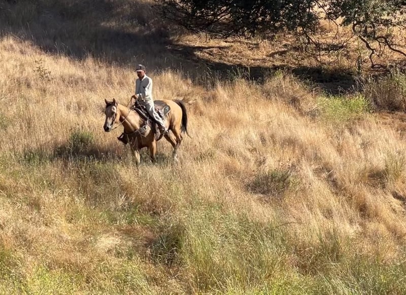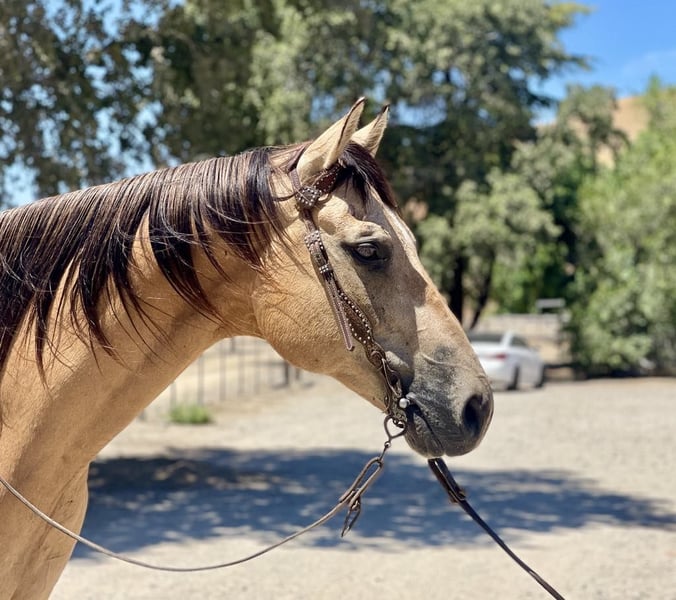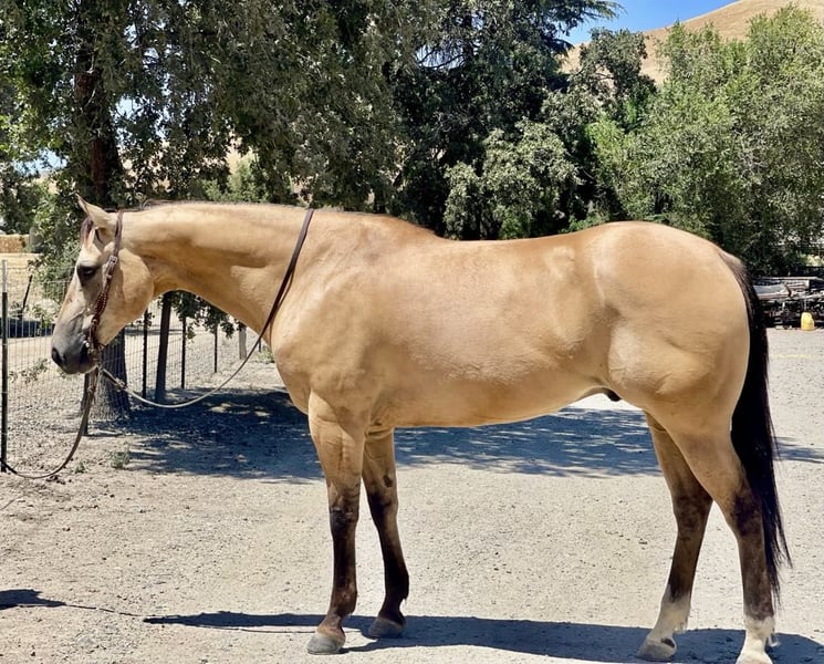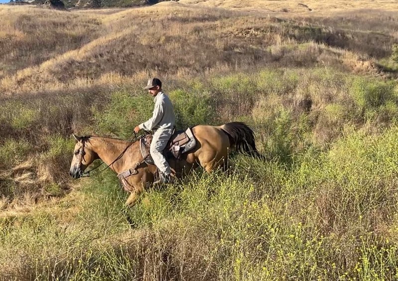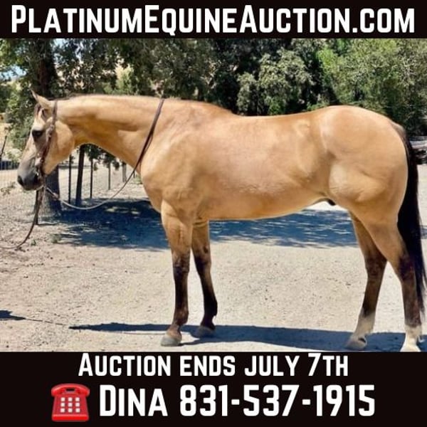 ONLINE AUCTION Place your bids at www.PlatinumEquineAuction.com Starting Bid $3500 Auction ends July 7th, 2024 Need a new saddle? Check out White Rock Saddles on our website or Facebook! Adobe is beautiful Buckskin with Dun markings. He is a gelding and is absolutely remarkable, not only with his beauty, but his loveable personality, willingness and capability. Adobe stands 15.1 hands and is 10 years old. He is the kind of horse that knows how to help you do a days work. He is great in the arena or out on the trails. He will literally go or climb up anything you ask him to. He loves trail riding and will lead, follow, or be in the middle of the pack. He has a good pace that covers ground and will get you to your destination safely. Adobe is good with other animals and all machinery. He is good with fly spray, vet, farrier tarps, and flags. Show him some love and he will be in your pocket. He will stand all day tied in the barn or in the trailer. If you’re looking for a horse that enjoys being ridden, this horse is for you. Adobe has a classy turn around, nice stop and easy lead departures. He has been used in the feedlot working cattle and out on the ranch for daily chores he’s good in the branding pen and will be easy for anyone to take out and enjoy. He is good outside crosses creeks, canyons and any other obstacles you may encounter. He is naturally broke, and extremely kind natured. Adobe has been started roping the sled and is adapting great. This horse is just a go to horse for anyone he rides correct and moves off leg cues and uses his hind end well. This is a horse you will look long and hard to find because they are not easy to let go of. He is current on worming and vaccinations and has zero bad habits. He is very eye catching and gets complimented everywhere he goes. Pleas contact Longhorn Ranch Dina 831-537-1915 Located in Paicines, CA. ONLINE AUCTION Place your bids at www.PlatinumEquineAuction.com Starting Bid $3500 Auction ends July 7th, 2024 Need a new saddle? Check out White Rock Saddles on our website or Facebook!