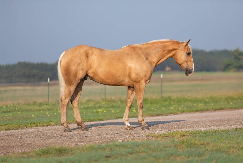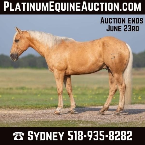 ONLINE AUCTION Place your bids at www.PlatinumEquineAuction.com Starting Bid $3500 Auction ends June 23rd, 2024 Need a new saddle? Check out White Rock Saddles on our website or Facebook! Admiral Lees Poco Doc 139 is a 2014 Registered AQHA gelding. Admiral stands at 15.1 hands with a stocky build and stunning Palomino color. Admiral’s personality is exactly the reason so many people prefer geldings and why he was given his name, he will happily do whatever is asked of him and work his heart out for you. Admiral is a seasoned veteran in the arena and out on the trail, with many miles under saddle. He will walk, trot, lope with his head low on a loose rein. He neck reins with ease, is soft in his mouth, and moves off leg pressure with ease. He has an excellent rocking horse lope thats comfortable and easy to sit. Admiral will confidently take you on trails, help sort and gather cattle, and will surely be an eye catcher in the arena. He will happily go out in a group or alone without complaint. I honestly don’t have enough good things to say about this horse, he has been my go too when I’ve needed to gather cattle, pony colts, or just need a horse to check fences. He will stand tied so nicely to be groomed, saddled, and bathed. He loads and unloads on the trailer with ease. He is happy in a stall or outside by himself or with other horses. Admiral has no vices or bad habits that I’ve come across and is a gentleman on the ground and in the saddle. He has recently been seen by our vet, farrier, dentist, and chiropractor and was an outstanding citizen for all. This gelding has definitely become a favorite at my barn and not just for his pretty looks, he’s gentle as can be and so willing to please you, he will make a great addition to anyone’s barn. Please call Sydney with SRS Training and Sales 518-935-8282. Admiral is located in Granbury, TX. ONLINE AUCTION Place your bids at www.PlatinumEquineAuction.com Starting Bid $3500 Auction ends June 23rd, 2024 Need a new saddle? Check out White Rock Saddles on our website or Facebook!