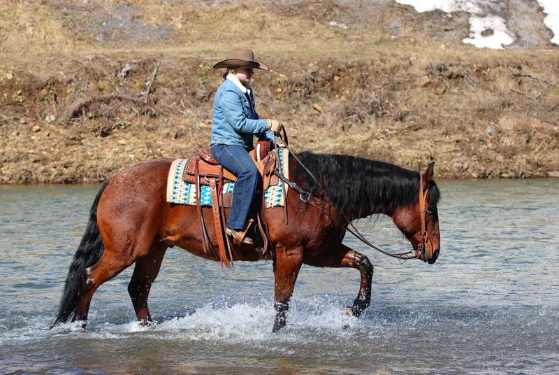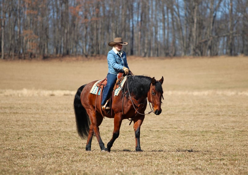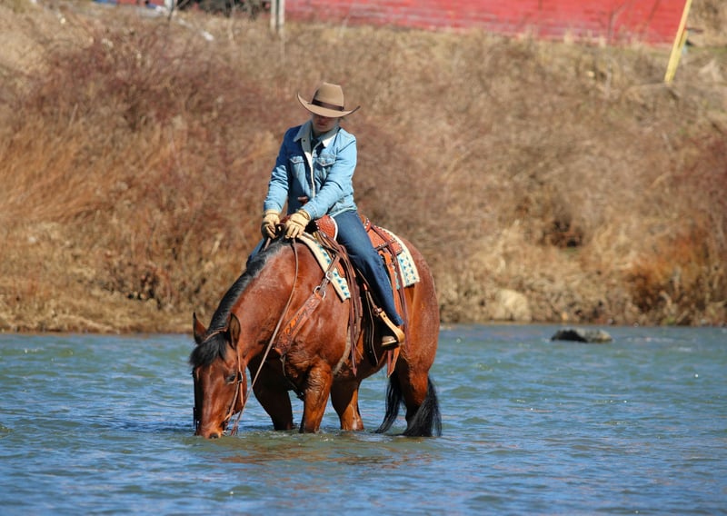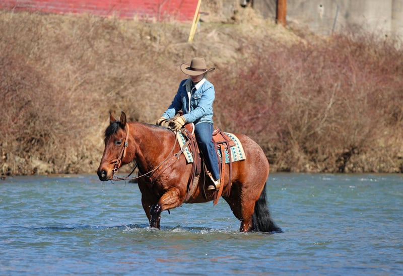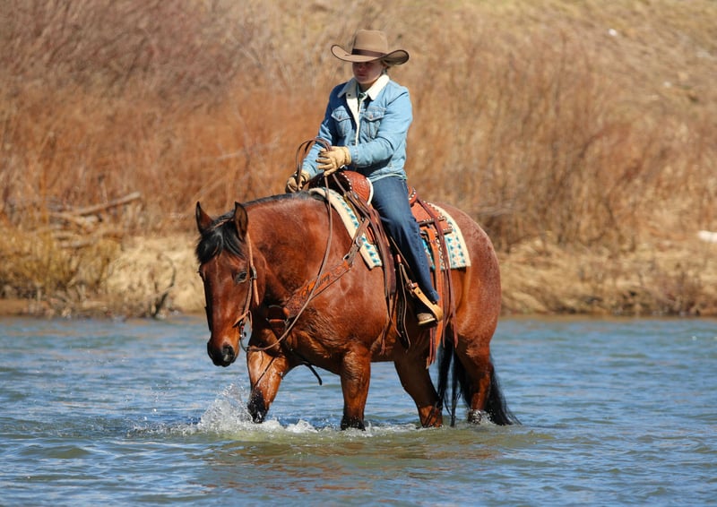 Lariat, hongre AQHA bai roan de 12 ans, mesurant 15,1 mains