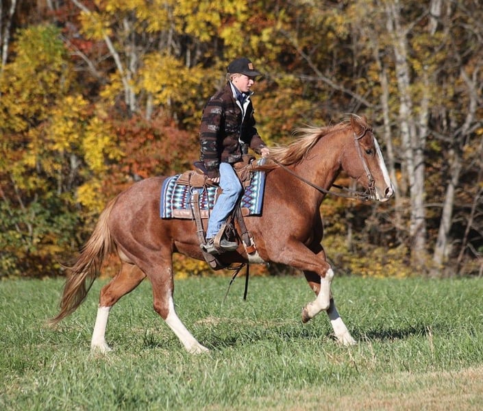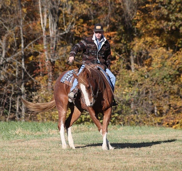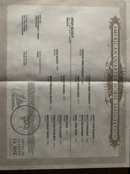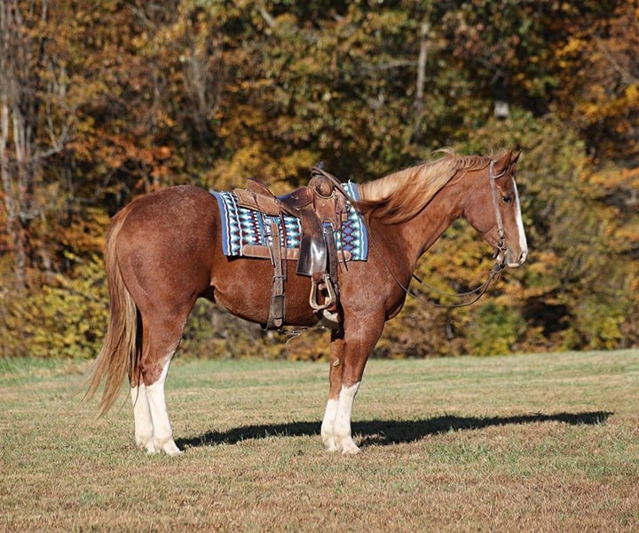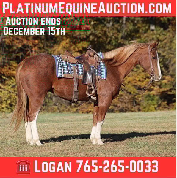 ONLINE AUCTION Place your bids at www.PlatinumEquineAuction.com Starting Bid $3500 Auction ends December 15th, 2024 Need a new saddle? Check out White Rock Saddles on our website or Facebook! Irish Scoot is a 10-year-old, 15.1H, Red Roan Gelding with blaze and 4 stockings. He is registered AQHA and has a good pedigree that includes Paddys Irish Whiskey. Scoot is a true ranch horse and if you’ve got a job to do and want a horse that will help you do it right, the work will be easy with this guy! Scoot will go anywhere that you point him whether that is steep slopes, over deadfall, across rivers or rough terrain, he handles it with ease! He is a seasoned ranch horse that has been used at brandings, he has pasture roped, has been out of the box on the head side, he has loaded trucks, done team sortings and been used at ranch rodeo events as well. Scoot has been ridden throughout Montana, as far west as the California coast and he’s ridden through the swamps of Louisiana. He is well traveled and well experienced. Scoot lopes nice circles, he is truly one hand broke, he spins around both ways, slide stops, backs and sidepasses. Scoot has never refused us and has never tried to buck. He is a very solid horse that stays sound with no maintenance. For more info call Moore Trained Horses Logan 765-265-0033 Located in Level Green, KY. ONLINE AUCTION Place your bids at www.PlatinumEquineAuction.com Starting Bid $3500 Auction ends December 15th, 2024 Need a new saddle? Check out White Rock Saddles on our website or Facebook!