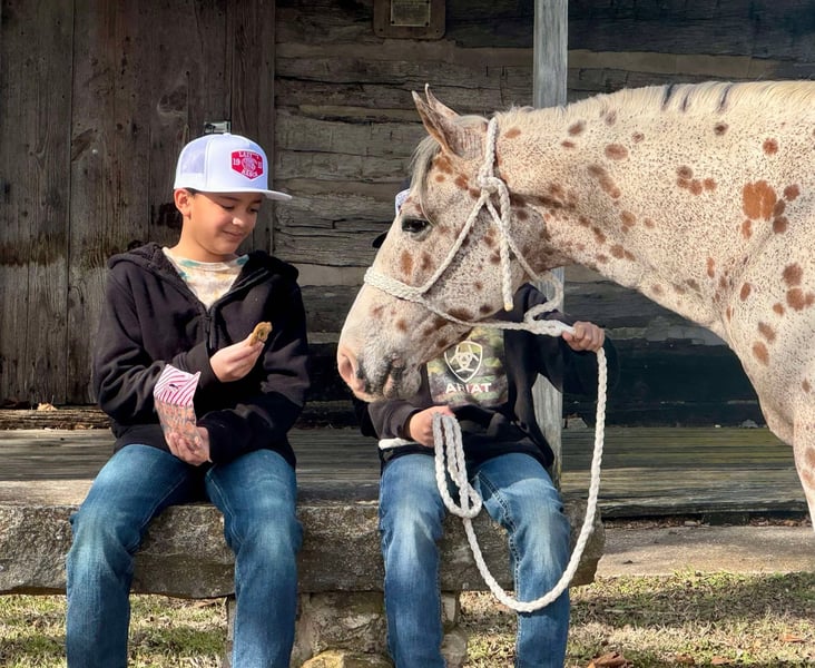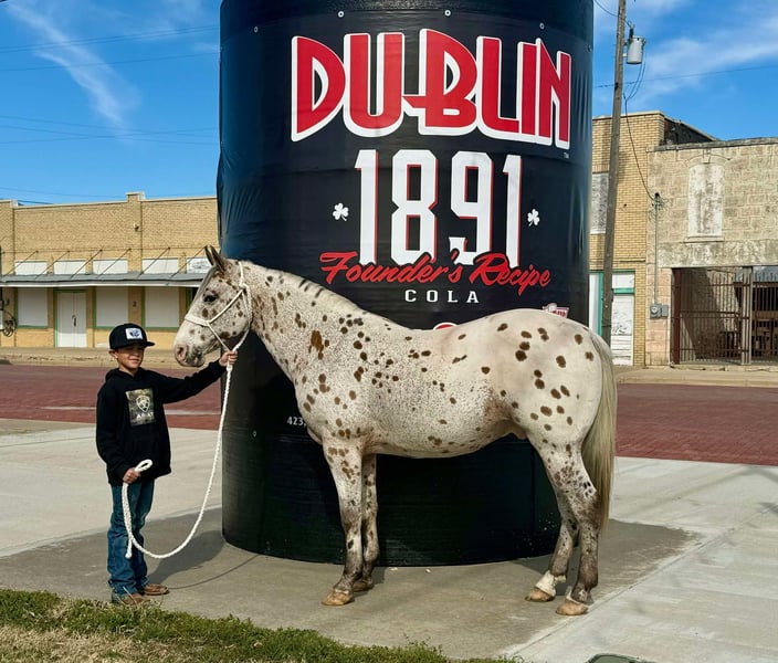 ONLINE AUCTION Place your bids at www.PlatinumEquineAuction.com Starting Bid $3500 Auction ends February 3rd, 2025 Need a new saddle? Check out White Rock Saddles on our website or Facebook! Applejack is his name, and being a friendly family horse is his game! This leopard Appaloosa is one of a kind. He stands 14 hands and is 12 years old. Applejack has been packed on, gathered cattle in the rugged mountain terrain, and pulled buggies on the ranch and into town. He has been trail ridden out alone and in large groups of horses and it doesn’t matter to him if he is in the front or back of the pack. We have had some fun on him dragging the kiddos on sleds through the mud and water. Applejack is as friendly as they get, whenever you walk in the barn and always nickers to greet you. When you walk in his pen, he comes over and wants to hangout and see what you’re doing. He loves to get scratches from the kids and adults. Easy to blanket and wears a size 72, loads and unloads from the trailer with ease. He has no bad stall habits, keeps his stall orderly and is an easy keeper. Applejack is very stout made for his height, which makes him a great asset to the youth and adult riders as well. He has been ridden just about everywhere you can ride one. Applejack doesn’t have all the fancy reining maneuvers, he isn’t a cutting horse with a big stop and quick movements, BUT he always wants to please and go down the trails so you can enjoy your time with him. Watch his video and you will see he is a jack of all trades! Best thing about him is you can always show him something new and he just goes along with it and stays calm. This is a flashy gelding that will get attention anywhere he goes, and you’ll be happy to have him in your barn every day! Contact Red Lock Ranch 775-253-1000 Located in Dublin, TX. ONLINE AUCTION Place your bids at www.PlatinumEquineAuction.com Starting Bid $3500 Auction ends February 3rd, 2025 Need a new saddle? Check out White Rock Saddles on our website or Facebook!