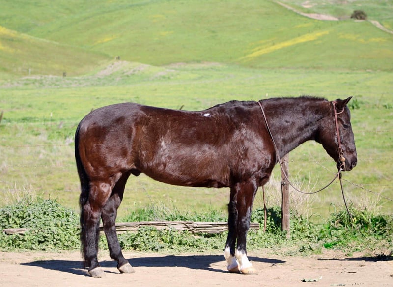 "AVAILABLE ON ONLINE HORSE AUCTION AT www DOT PlatinumEquineAuction DOT com BIDDING OPEN NOW thru SUNDAY | FEBRUARY 22ND! *Final price will be determined on auction site* CONSIGNOR CONTACT INFO: Cheyenne Rey 831-537-8746 LOCATION: Bitterwater, CA Cole is a 13-year-old Black Quarter Horse, standing 14.2HH, and he truly embodies what it means to be a safe, reliable, and gentle partner. He has an old soul and a heart of gold, making him the perfect fit for families, beginners, and experienced riders alike. From toddlers to grandparents, Cole has safely and happily carried them all. He is calm, steady, and rides at a slow, easy pace. He has no spook, bolt, or buck—just consistency and confidence every time you saddle up. Cole has been ridden down long trails, roads, and courses without a single fuss. He takes every new environment in stride and stays relaxed in every scenario. Whether you want to head out alone or ride in a group, he’s equally content and dependable. In the arena, Cole shines just as much. He has a natural low headset, neck reins beautifully, and responds willingly, making him easy and enjoyable for riders of any level. He’s soft, smooth, and a pleasure to ride. Nothing phases this horse. Cole has carried flags, tarps, and ropes draped all over him and never misses a beat. He remains calm, trusting, and level-headed no matter what you throw his way. More than anything, Cole is kind, gentle, and honest. He’s the kind of horse you look forward to riding every day—the one you never worry about. If you’re searching for a true babysitter horse, a confidence builder, or a partner you can rely on every single time, Cole checks every box. If you want a horse you can trust with your family and cherish for years to come, Cole is waiting for you. He is located in Bitterwater, CA. For more info contact Cheyenne at 8315378746.