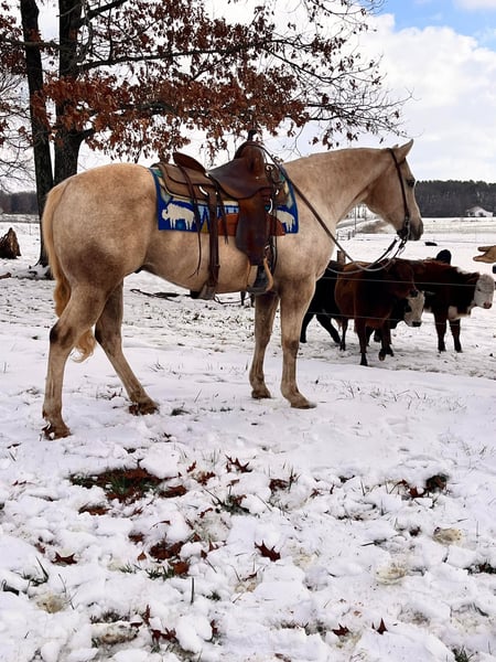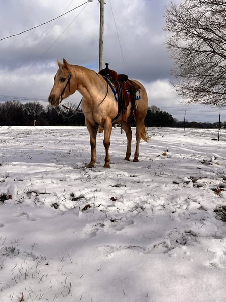 ONLINE AUCTION Place your bids at www.PlatinumEquineAuction.com Starting Bid $3500 Auction ends January 26th, 2025 Need a new saddle? Check out White Rock Saddles on our website or Facebook! If you need laid back, slow and easy, safe and dependable but also would prefer it to have some good looks??? Nugget is your guy! He is 12 years old, stands 14.3 hands tall, is very stocky built and is a true gentleman! He is that beautiful golden palomino color that everyone loves too and also has a heart of gold! He has been trail ridden extensively by young children and his favorite speed is slow! He is the type of horse that will build his riders confidence levels and he loves to be brushed loved on! He loves to eat treats too! He is one hand broke, has a smooth trot/lope, is good for any level rider, traffic safe, good around cattle and would be a great family horse! He has no issues and is extremely gentle forgiving gelding if you are looking for a well mannered, extremely gentle gelding don’t miss this guy! For more info or to make a Buy It Now Offer, contact Chad Little 256-476-4347 Located in Mt. Hope, AL. ONLINE AUCTION Place your bids at www.PlatinumEquineAuction.com Starting Bid $3500 Auction ends January 26th, 2025 Need a new saddle? Check out White Rock Saddles on our website or Facebook!