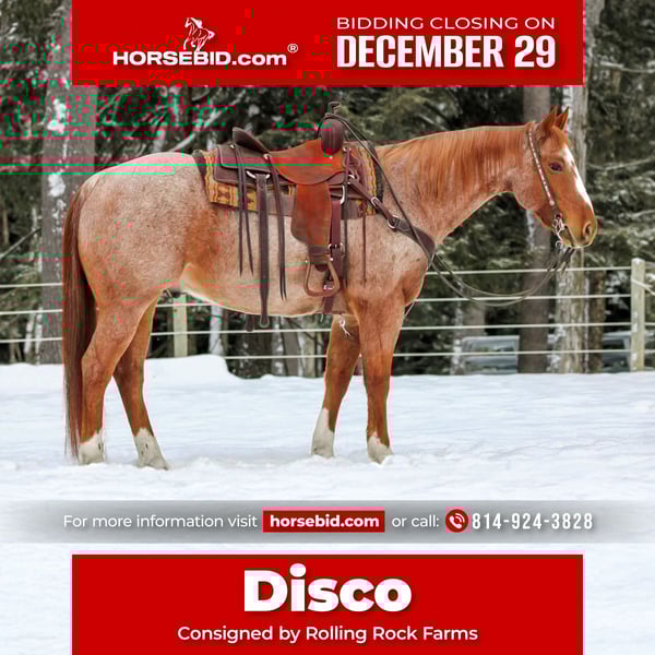⚜️ 𝓗𝓮𝓻𝓲𝓽𝓪𝓰𝓮 𝐖𝐢𝐧𝐭𝐞𝐫 𝓒𝓵𝓪𝓼𝓼𝓲𝓬⚜️ Happening now thru MONDAY | DECEMBER 29th - Available EXCLUSIVELY on HorseBid's website! For more details and to register visit: www.Horsebid.com CONSIGNOR CONTACT: Rolling Rock Farms 814-924-3828 LOCATION: Miola, PA BREED: Quarter Horse REGISTERED: Yes REGISTERED NAME: CCR PERKS ROAN DISCO COLOR: Red Roan HEIGHT: 15.1 AGE: 12 GENDER: Gelding Car Perks Disco known as Disco is a red roan gelding standing 15.1 hands tall and is 12 years old. He is stout made and the right size for most riders to feel comfortable and balanced. His age and experience make him a solid dependable horse that has had time to see and do enough to be reliable without feeling dull or overused. In the arena Disco is very broke and consistent. He catches both leads easily and has smooth one step lopes. He will trot around on a loose rein or ride with a headset when asked and he neck reins correctly. He handles a flag crosses a tarp and remains quiet with different activities. He can swing a rope and is capable of sorting cows which makes him suitable for ranch or general riding use. Outside the arena Disco rides out confidently and has been used on many miles of varied terrain. He will cross water push through thick brush and ride quietly in any position of a group. He is comfortable riding alone and does not rely on other horses. He has been exposed to different environments and remains steady when taken new places. Disco is easy to manage on the ground. He stands quietly to be tacked bathed and blanketed. He is used to living in a stall or being turned out and does well in either setting. He is easy to catch and sits in the middle of the pecking order. He has good ground manners and is simple to handle for daily care. Disco sells with a negative Coggins test current rabies vaccination and a recent deworming. Disco is a solid honest gelding that is easy to ride handle and enjoy. He would be well suited for someone looking for a dependable horse to ride in and out of the arena. If you would like to check out or have any questions please feel free to contact Ethan at (814) 924-3828