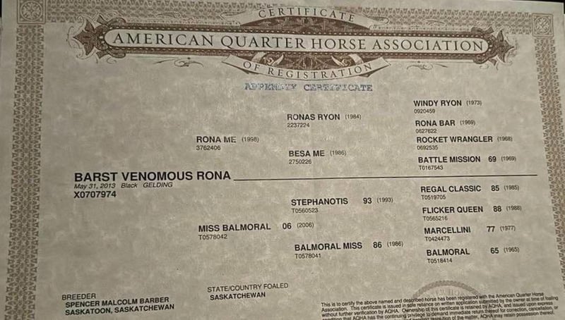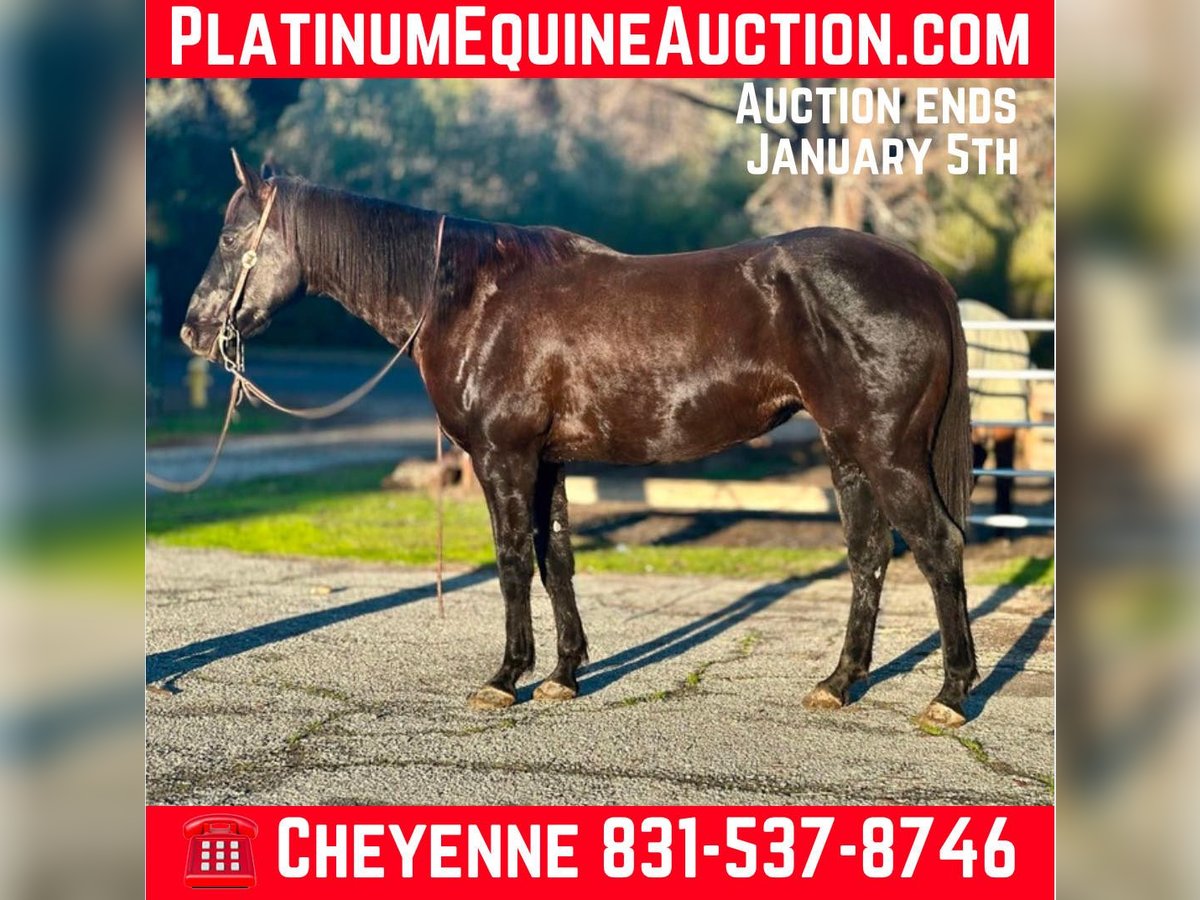 ONLINE AUCTION Place your bids at www.PlatinumEquineAuction.com Starting Bid $3500 Auction ends January 5th, 2024 Need a new saddle? Check out White Rock Saddles on our website or Facebook! BARST VENOMOUS RONA aka Big Ron is a 2013 black AQHA gelding. Ron stands just over 15.3HH and is a tank! This big fella is a gentle giant and loves his people. Ron has been used in all different aspects of riding, from ranch work with sheep, and cattle, arena riding, English riding, and trails. He is a jack of all trades! Ron has a more whoa than go demeanor, with a laid back, go with the flow personality. Nothing riles this guy up and he is calm and sane in any situation. He has no spook, no buck, and is safe for anyone, with any level of experience. This guy never has any refusal, and has been one that has packed new riders all over town roads, steep trails, as well as, around the arena. He travels out in rough terrain, going anywhere you point him without hesitation. In the arena, he has very fluent smooth gaits and is very light in the bridle. He neck reins, moves off leg pressure, collects at the poll, and is just very easy to get along with. He is patient enough for riders with less experience, and handy enough for the experienced to enjoy. He has been patterned on the barrels and lopes a pretty pattern. Ron has been roped off out in the pasture and started on the sled in the arena. You can do all the daily ranch chores on top of this guy. You can open and close gates, sort cattle, rope calves that need doctored and have a great trail partner out riding fence lines! Ron doesn’t get fresh, and never has a bad attitude, he is always happy to get to work, or even happier to take a relaxing trail ride anywhere you choose. This is a fantastic BIG gelding who has the experience and exposure to a lot of different places, this ensures no matter what his new home is, he is ready to make sure his new owners enjoy it! He is located in Bitterwater, CA. For more info contact Cheyenne Rey 831-537-8746. ONLINE AUCTION Place your bids at www.PlatinumEquineAuction.com Starting Bid $3500 Auction ends January 5th, 2024 Need a new saddle? Check out White Rock Saddles on our website or Facebook!