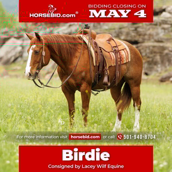 ▪️▫️◾️𝐭𝐡𝐞 𝑴𝒂𝒚 𝐒𝐞𝐥𝐞𝐜𝐭◾️▫️▪️ Happening now thru MONDAY | MAY 4th - Available EXCLUSIVELY on HorseBid's website! For more details and to register visit: www.Horsebid.com CONSIGNOR CONTACT: Lacey Wilf Equine 501-940-8704 LOCATION: Quitman, AR BREED: Quarter Horse REGISTERED: Yes REGISTERED NAME: CAT ANA BIRDIE *By Athena Puddy Cat* COLOR: Red Roan HEIGHT: 15.1 AGE: 13 GENDER: Gelding Cat Ana Bird, better known as Birdie, is a 2013 model gelding standing 15.1 hands and built around the kind of experience you can feel more than you can list. He is sired by Athena Puddy Cat and out of a granddaughter of Smart Little Lena, and while the pedigree is there, what matters is how it shows up when you ride him. Birdie has spent his time where it counts, at the stockyards and out on the ranch, in the kind of environments that don’t leave room for guessing. He has seen pressure, handled cattle, and learned to stay level-headed in the middle of it. That experience translates into a horse that doesn’t get hurried, doesn’t get tight, and doesn’t need to be micromanaged. In the arena, he feels like a horse that already knows how to meet you halfway. He is soft in the bridle, responsive through his body, and carries a level of feel that doesn’t require effort to find. He is very broke in a way that feels practical, not showy, the kind you can ride without having to think through every step. Outside, Birdie is straightforward and unbothered. He crosses whatever is in front of him, logs, water, uneven ground, without needing reassurance, and stays the same whether he is by himself or with a group. He is not looking for a reason to be difficult, and that makes him easy to enjoy. Day to day, he fits. Catch him, saddle him, haul him, shoe him, it’s all routine to him. He stands, waits, and handles it without fuss. He is suitable for most levels of rider because he doesn’t overreact, doesn’t get ahead of you, and doesn’t change depending on the day. Birdie is the kind that becomes part of your routine before you even realize it. He’s easy to pull out, easy to ride, and hard to put away, with a mindset that doesn’t change from one day to the next. There’s no guessing with him, no adjusting your expectations depending on the day—just a horse that shows up the same, does his job, and makes everything around him feel a little more straightforward.