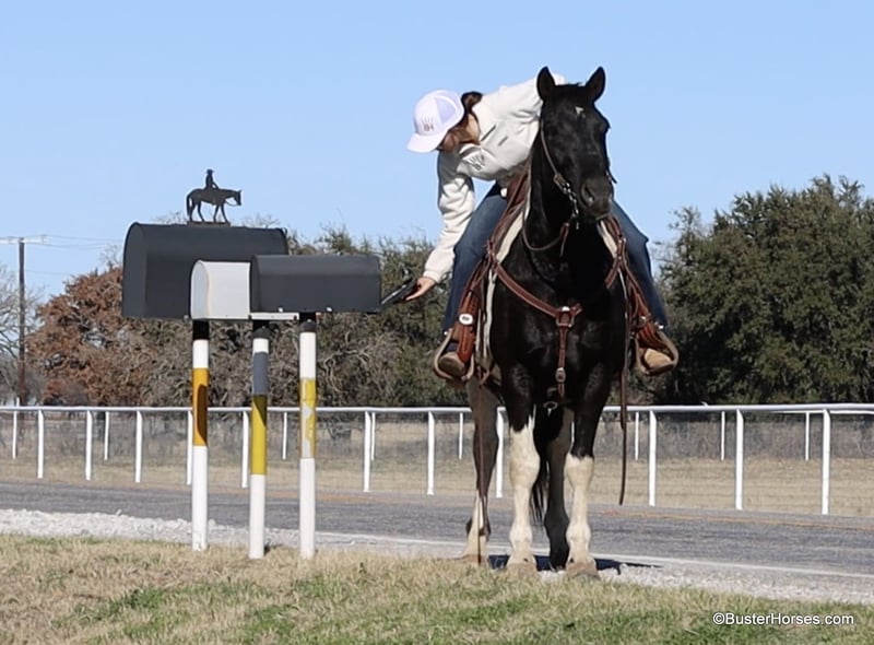 ONLINE AUCTION Place your bids at www.PlatinumEquineAuction.com Starting Bid $3500 Auction ends February 16th, 2025 Need a new saddle? Check out White Rock Saddles on our website or Facebook! Oreo is about as stout and wide and big boned as they make them! He is just the right size at 14.2H, and just the right age at 12. He’s seasoned and seen about everything, but still has years and years left in front of him. He is a big stout guy, but not so far off the ground that he’s hard to reach! He is easy to get your saddle up on and easy to get on and off of, but he is stout enough and big boned enough to carry just about any size rider comfortably, his big ol wide barrel will fill out even the longest legs! Oreo originally hails from Ol Mexico, and being from down there… he has seen more just plain using miles than most horses have! He has been ridden and used on the daily, and has seen all sorts of terrain and all sorts of sites! Most recently he has been ridden by a young boy sorting in the pens, and he is the kind you can just leave tied to the fence, hop right on and just go! He has been turned out for weeks before, and you can always just grab him and go – he is no nonsense, he knows his job, and not much of anything phases him. He has a decent handle and would be a fun horse for the entry level playdays, or to learn to swing a rope off of and track the dummy and the slow trotters and rope your first practice steer off of. He is one of those unique horses, that you can practically change the planet he’s on – and he just looks each way, takes a big breath, and then acts like you pulled him up out of his stall and are right at home. He has been to a lot of places and seen a lot of different things Not much of anything bothers this one! Oreo has front shoes on, and was just shod last week, and he also wormed. He is in great shape, a little on the fat side, and is ready to go to work doing whatever job you have for him. Watch his video, and to see additional videos, go to our website: BusterHorses.com or our Facebook page Buster Horses Please call anytime for more information at 214-605-7174 Oreo is located in Weatherford, TX – one hour from Dallas / Fort Worth International Airport. He is an easy day trip, or fun overnight trip to come and try out, from anywhere! We are experienced, knowledgeable sellers, and we can help with quickly arranging affordable shipping to any buyer’s location – we have experience shipping worldwide – including regularly to Hawaii, Canada, Mexico, Europe, and South Africa. ONLINE AUCTION Place your bids at www.PlatinumEquineAuction.com Starting Bid $3500 Auction ends February 16th, 2025 Need a new saddle? Check out White Rock Saddles on our website or Facebook!
