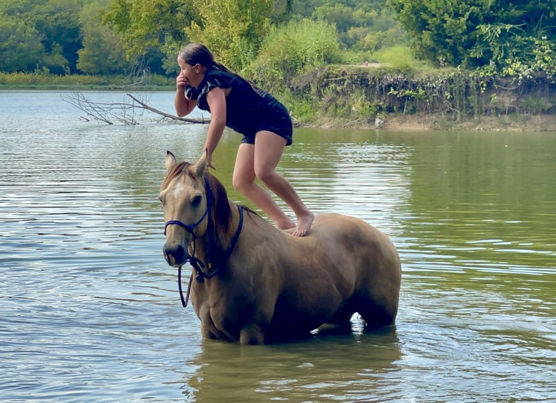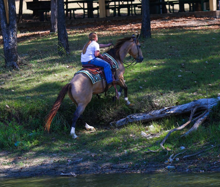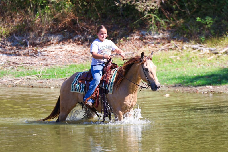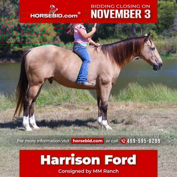 ⚜️𝐓𝐇𝐄 𝐅𝐀𝐋𝐋 𝐇𝐄𝐑𝐈𝐓𝐀𝐆𝐄 𝐂𝐋𝐀𝐒𝐒𝐈𝐂⚜️ Happening now thru MONDAY | NOVEMBER 3rd - Available EXCLUSIVELY on HorseBid's website! For more details and to register visit: www.Horsebid.com CONSIGNOR CONTACT: MM Ranch 469-595-6289 LOCATION: Forney Tx BREED: Quarter Horse REGISTERED: No COLOR: Buckskin HEIGHT: 13.3 AGE: 13 GENDER: Gelding Where do I even start with a great BABYSITTING UNICORN gelding like this one! Harrison Ford is the perfect little fun size horse standing 13.3 hands tall. He has been part of our family for along time now and has babysat so many kids, we are saddened by this decision but it is time to part with him. Harrison is 13 year old buckskin gelding with 4 white socks. He has manners and rides around like a big horse, he’s as broke as broke gets and I would trust him with any kid, small adult, grandma or grandpa, any age, beginner. Doesn’t matter. You can ride him. I trust anyone can ride him anywhere, including BRIDLE-LESS! Absolutely NO kick or buck in him! Absolutely no bad habits! Absolutely no maintenance. He is simple, easy, and fun to ride. 🚙 He has been more miles and seen more country than most people! When I say he’s been there and done that I mean it, he knows what a hard days work is outside in the country and will last all day. He is one handed broke, neck reins, and has a good stop! He has always been willing to go or do anything they have asked. He will ease thru the creeks/ponds, thickets, traffic safe, train safe, machinery safe, loud noises don’t bother him. He’s been to ropings, barrel races, jumping jumps, rodeos, spent many of long days working cows, dragging calves, hog hunting, swimming ponds, tied out camping, and been thru every aspect of the woods from thickets to boggy creeks, and trail riding down the roads. Trains honking and going by don’t bother him, he will ride right next to it. 🚂He even rides ENGLISH! We carry multiple buckets of feed strapped over his back to help carry to feed. Harrison has also been used to carry the American flag for the National Anthem at rodeos. He is BOMBPROOF, absolutely no spook at all and will go anywhere he is pointed, he never refuses or says no. He is a once in a lifetime time little horse. ☀️ He is one of those that is as honest as the day is long. He’s easy to catch, bathe, and hauls like a champ. He has the biggest heart and try of anything we have on the place. The kids themselves, saddle, bridle, and ride him everywhere with ZERO help from an adult. I trust this little horse enough for little kids to run up to him from the front or back and he will stand like a rock. 🪨 You can go rope on him, pop bull whips, run barrels, run poles, goats tie, TRICK RIDE, breakaway, and trail ride! Harrison will walk, trot, lope, or go as fast as you want in all the events! He is the coolest little guy around and everywhere we go he gets ALL the attention. He leads, loads, ties, bathes, clips, and stands for the farrier. I really can’t say enough good things about him. Please don’t hesitate to call us about Harrison, I’d love to talk to you about him. ⚡️He sells 100% safe and sound in every way. 🌎 We can help with making shipping arrangements to anywhere!!