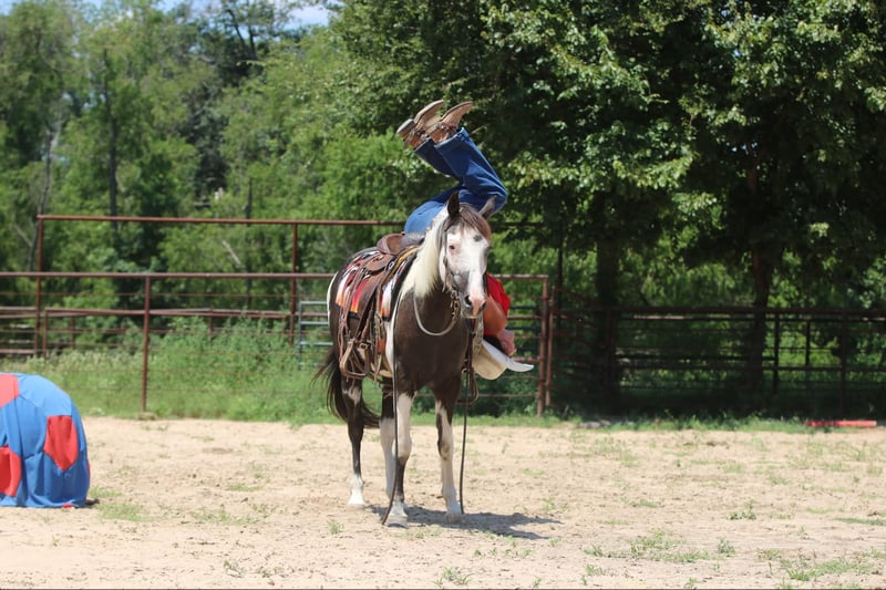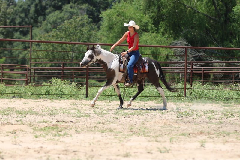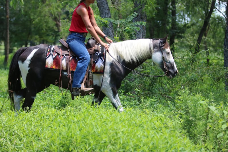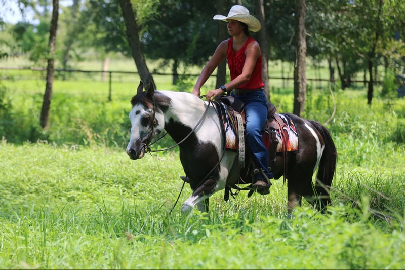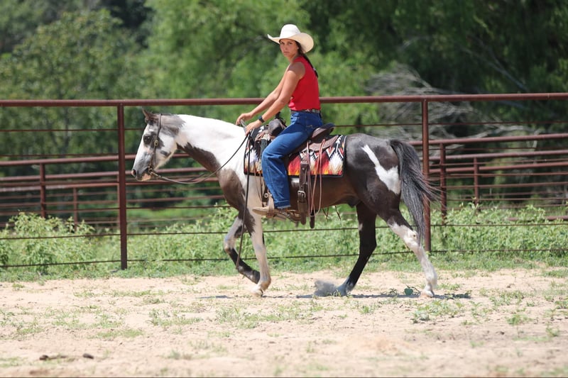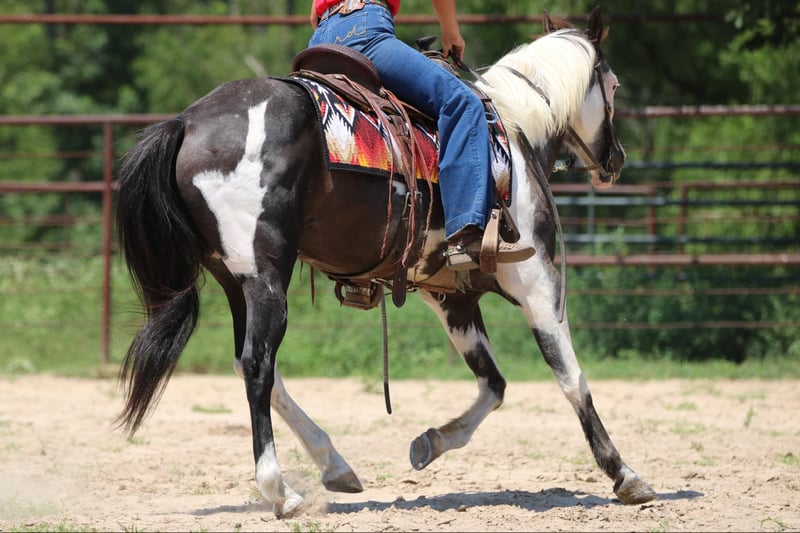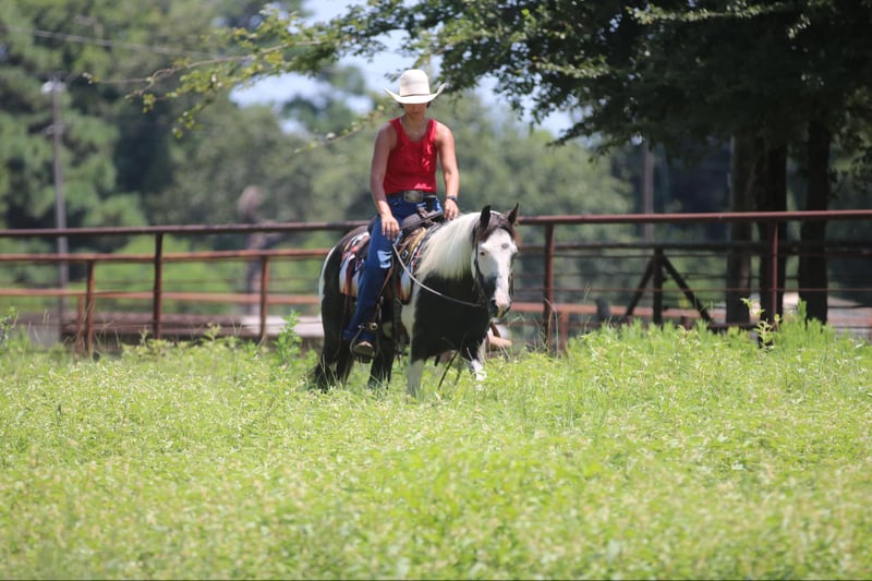 ONLINE AUCTION Place your bids at www.PlatinumEquineAuction.com Starting Bid $3500 Auction ends August 25th, 2024 Need a new saddle? Check out White Rock Saddles on our website or Facebook! Cosmo is one of the neatest colored black and white, 12-year-old, 14 hand pinto gelding. I have ever had in my barn. He is extremely sweet and gentle and has had littles and beginners climb all over him. His ground manners are fantastic, and he is excellent about his feet, even for a small child. He has been used quite a bit in lead line and walk/trot lessons. He has not been cantered a lot and will be much more woah than go. A kid will have a tough time getting him to break out of a trot if they are not carrying a crop but once he is cantering, he is very gentle and easy to handle. He has many trail miles and will go through water, ditches, and over bridges. This sweet gelding is ready to be your new best friend. Athens Tx. Adrieen Staudinger 479-685-5020. ONLINE AUCTION Place your bids at www.PlatinumEquineAuction.com Starting Bid $3500 Auction ends August 25th, 2024 Need a new saddle? Check out White Rock Saddles on our website or Facebook!