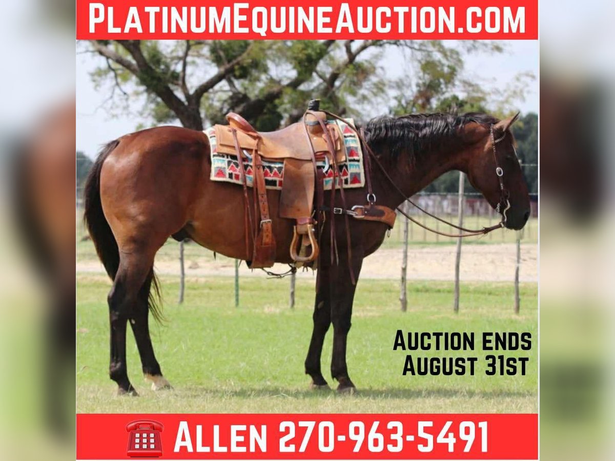 ONLINE AUCTION Place your bids at www.PlatinumEquineAuction.com Starting Bid $3500 Auction ends August 31st, 2025 Need a new saddle? Check out White Rock Saddles on our website or Facebook Kasey is the kind of gelding everyone wants in their barn. At 13 years old, standing 15 hands tall, and built correctly with a sharp bay coat, he’s not only easy on the eyes but also dependable, kind, and full of heart. This horse has more try and desire to please than most, and he will give you 110% every single ride. He is honest, reliable, and the type that never quits. Kasey is extremely easy to handle on the ground and under saddle. He stands quietly for saddling, grooming, and the farrier, and has excellent manners in every situation. He’s gentle, respectful, and truly a joy to be around. On the trail, Kasey is an absolute dream. He will go anywhere you point him and doesn’t hesitate when asked to cross water—he jumps right in like a fish! He’s sure-footed in rough terrain, confident in new environments, and level-headed whether you’re out alone or with a group. He’s also been day worked on, so he knows what a full day’s job is and will handle cattle and ranch work with ease. Kasey is just as easy to travel with as he is to ride. He loads and unloads without issue, hauls quietly alongside other horses or cattle, and ties to the trailer with patience while taking in new sights and sounds. At home, he gets along well in the pasture with geldings, mares, and even a mini pony, but he’s also content in a stall. Kasey is the total package—safe, seasoned, dependable, and versatile. Whether you’re looking for a trustworthy trail partner, a reliable ranch mount, or simply a well-broke gelding with a good mind, he is the kind you can trust and enjoy for years to come. Located in Lipan, TX. Nationwide shipping available – from Hawaii to Canada and anywhere in the U.S. Call or text Allan Morse 270-963-5491 for serious inquiries. ONLINE AUCTION Place your bids at www.PlatinumEquineAuction.com Starting Bid $3500 Auction ends August 31st, 2025 Need a new saddle? Check out White Rock Saddles on our website or Facebook