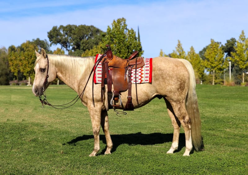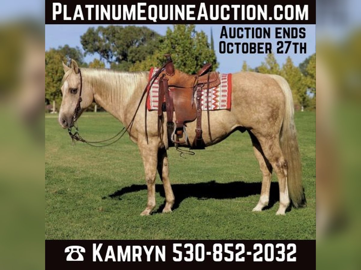 ONLINE AUCTION Place your bids at www.PlatinumEquineAuction.com Starting Bid $3500 Auction ends October 27th, 2024 Need a new saddle? Check out White Rock Saddles on our website or Facebook! Introducing Cheerio, a breathtaking 12-year-old, 15-hand dappled palomino gelding. This horse is as beautiful as he is kind, with a heart of gold and a temperament that makes him an absolute joy to be around. Cheerio is the whole package—uncomplicated, easy to handle, and versatile in both trail and arena work. If you’re looking for a horse that does it all with grace and ease, Cheerio is your guy. Cheerio is the definition of a trail horse deluxe. He’s experienced and confident, always ready for an adventure, whether you’re riding through scenic paths or more challenging terrain or through town. He handles water crossings, bridges, logs, steep hills, and rocky trails like a seasoned pro. No matter what’s ahead, Cheerio tackles it with calm and steady composure. He loves exploring the outdoors, making him the perfect partner for long, relaxing trail rides or more ambitious rides through varying terrains. Cheerio has been through just about every obstacle you can imagine and never hesitates to face new challenges. Whether it’s pool noodles, tarps, teeter-totter bridges, swaying bridges, water bottles, or even waterfalls, Cheerio confidently navigates through anything you point him at. His calm and steady nature shines, making him an ideal horse for competitive trail riding, obstacle challenges, or simply a reliable partner for exploring unpredictable environments. Not only is Cheerio a trail superstar, but he’s also a dream in the arena. He knows his leads, has an incredibly smooth and easy trot, and transitions between walk, trot, and canter effortlessly. His gaits are comfortable to ride, and his canter is smooth and collected, making him enjoyable for riders of all levels. He’s more of a “woah” than a “go,” meaning he’ll walk, trot, and canter on a loose rein without rushing, making him perfect for those who prefer a laid-back ride. His stop comes right off your seat, making him a reliable and responsive horse whether you’re working in the arena or on the trail. Cheerio has the kind of ground manners that make him an absolute saint to handle. He stands like a rock for the farrier, grooming, saddling, and bathing—he’ll even doze off during it! His calm demeanor extends to every situation, whether it’s around dogs, loud noises, smoke, tractors, ATVs, or heavy equipment. He’s unphased by wildlife, cows, or other distractions, making him an excellent partner for riders who need a horse with a bombproof attitude. Loading Cheerio into a trailer is a breeze. He steps right in and out. Don’t miss out on Cheerio he’s definitely one you’ll want in your barn. Located in Pleasant Grove, CA. Contact KW Ranch and Performance Horses Kamryn 530-852-2032. ONLINE AUCTION Place your bids at www.PlatinumEquineAuction.com Starting Bid $3500 Auction ends October 27th, 2024 Need a new saddle? Check out White Rock Saddles on our website or Facebook!