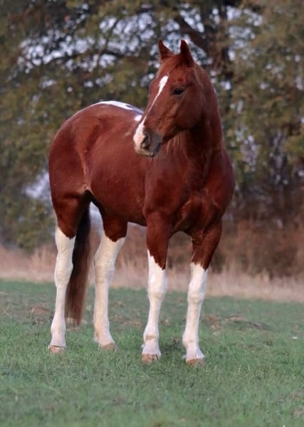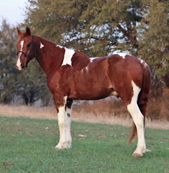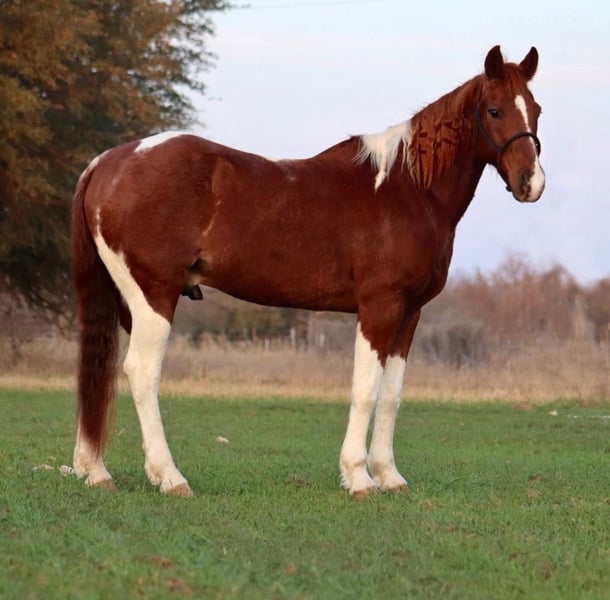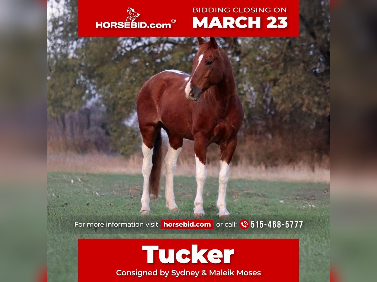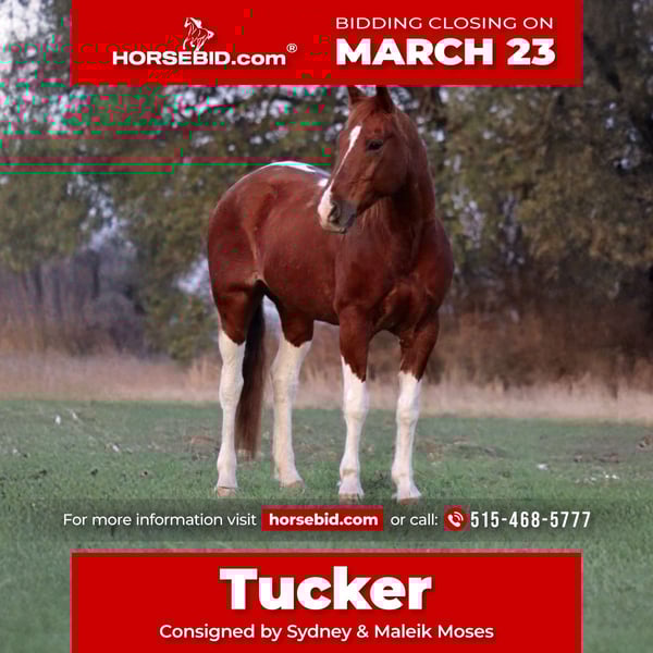 ⚜️𝓽𝓱𝓮 𝐆𝐎𝐋𝐃 𝓢𝓮𝓵𝓮𝓬𝓽⚜️ Happening now thru MONDAY | MARCH 23rd - Available EXCLUSIVELY on HorseBid's website! For more details and to register visit: www.Horsebid.com CONSIGNOR CONTACT: Sydney & Maleik Moses 515-468-5777 LOCATION: Stephenville, TX BREED: Quarter Horse REGISTERED: No COLOR: Sorrel and white paint HEIGHT: 15 AGE: 14 GENDER: Gelding Tucker, 14 year old gelding, is a seasoned performance horse finished in breakaway, heading, heeling, and calf roping. He’s a big-motor horse who knows his job and will not be outrun — perfect for high school, college, amateur, or jackpot riders looking to hit the pay window. He can get fired up in the box if running multiple runs without scoring, but he thrives on the challenge and loves his work. With proper, soft handling, he’s a powerhouse in the arena. Tucker hauls and travels like a pro — eats, drinks, and handles the road with ease. He’s also versatile on the ground: loads, leads, ties, ponies colts, picks up his feet easily. And stands well for the farrier. He has a blemish on his right front fetlock, present since he was a baby, which has never affected his performance. Maintenance is minimal — hocks and coffins have been injected and he’s ready to go. This is a horse for someone who wants a talented, seasoned competitor that can consistently deliver in the arena.
