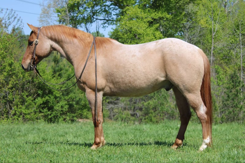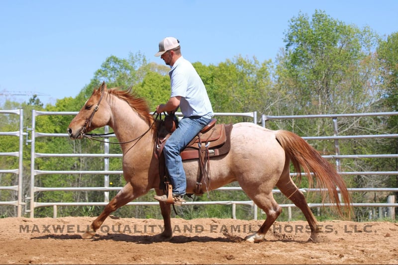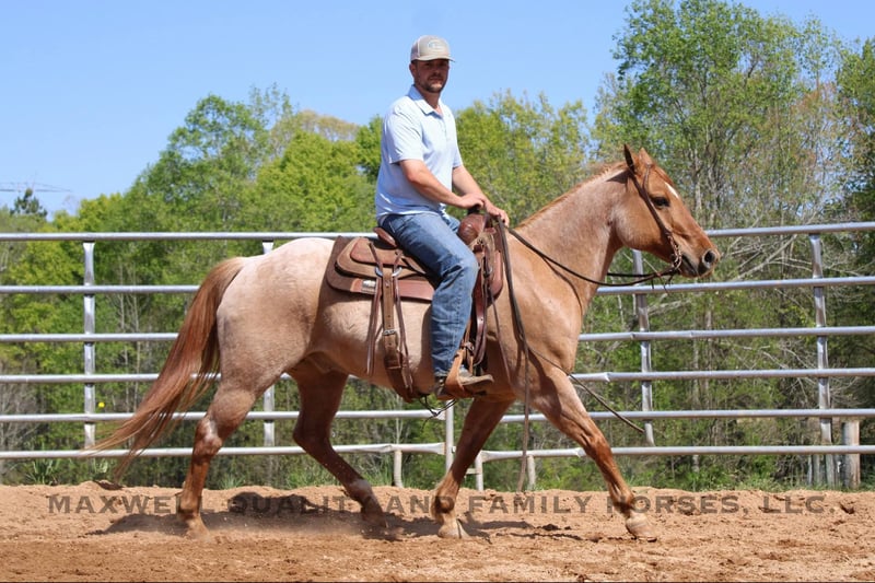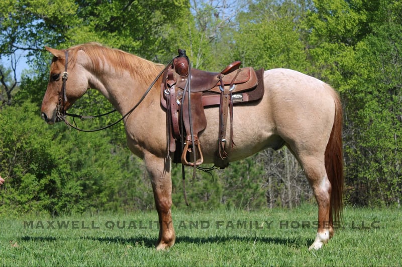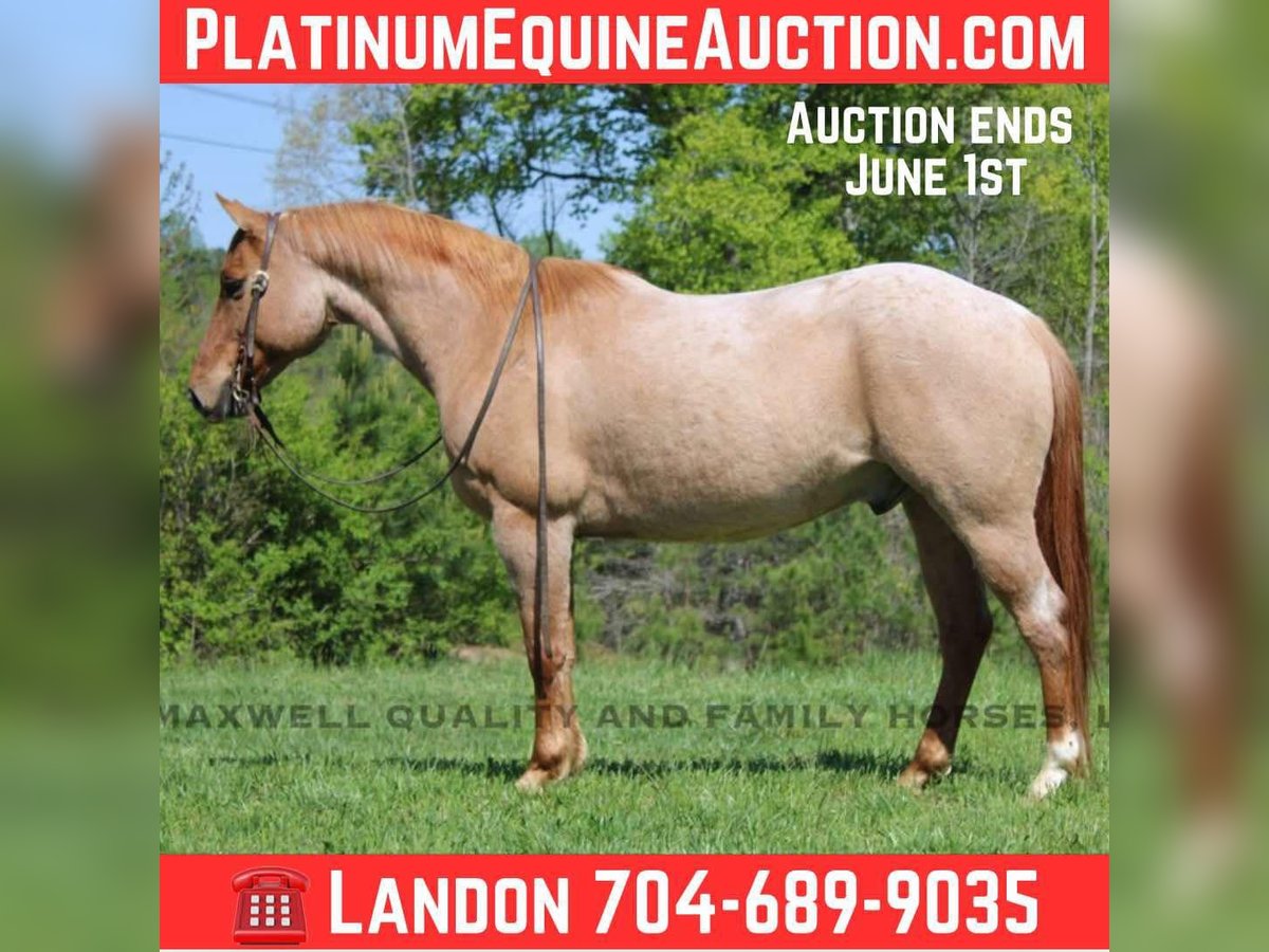 ONLINE AUCTION Place your bids at www.PlatinumEquineAuction.com Starting Bid $3500 Auction ends June 1st, 2025 Need a new saddle? Check out White Rock Saddles on our website or Facebook! Rivet is a 13 year old, red roan quarter horse gelding who’s truly as wide as he is tall. Standing 15h with a stout build from jaw to foot. The pictures just can’t do him justice! Rivet will ride in the palm of your hand and is slow and easy for the kids, he will build your confidence levels yet can pick up to do any job that is asked of him. He will trail ride alone or with a group and will go where you please. He will cross creeks, logs, ditches, deadfall, you name it and he will ride through it! He will push cattle and side pass to the gates, it’s all built in his resume. He sells sound and sane and will turn heads in any crowd. He is one hand broke, has a smooth lope with a good stop and a good mind. Located in Cherryville, NC nad we can setup deliver anywhere. Please call or message Maxwell Family Horses Landon 704-689-9035 with any questions or to make a buy it now offer. THANKS! ONLINE AUCTION Place your bids at www.PlatinumEquineAuction.com Starting Bid $3500 Auction ends June 1st, 2025 Need a new saddle? Check out White Rock Saddles on our website or Facebook!
