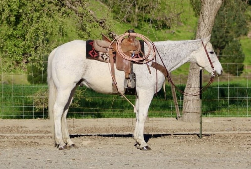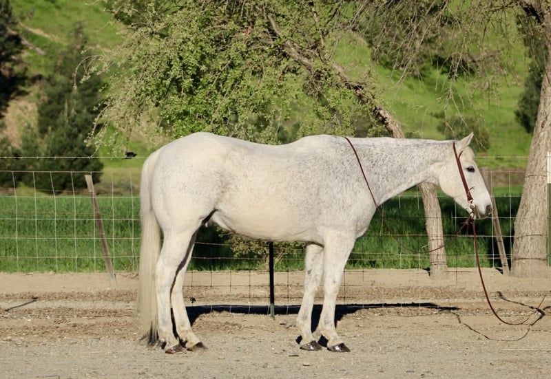 "AVAILABLE ON ONLINE HORSE AUCTION AT www DOT PlatinumEquineAuction DOT com BIDDING OPEN NOW thru SUNDAY | APRIL 5TH! *Final price will be determined on auction site* CONSIGNOR CONTACT INFO: Cheyenne Rey 831-537-8746 LOCATION: Bitterwater, CA Otis is a 15.1-hand, 14-year-old grey gelding who truly represents the definition of a safe, seasoned, and reliable horse. If a horse could ever be called bombproof, Otis would be the one. He has an exceptionally quiet mind and an unflappable temperament, remaining calm and composed in situations that would unsettle most horses. Nothing seems to phase him—whether it’s new environments, wildlife, traffic, or beginner rider mistakes, Otis stays steady, relaxed, and confident. His kind and forgiving nature makes him a horse that virtually anyone can get along with. Otis naturally has more “whoa” than “go,” making him an ideal choice for riders who value safety and control, yet he is still responsive and easy to transition through all of his gaits. He offers a wonderfully smooth and comfortable lope that riders often describe as “pony-like” in its softness and rhythm, making him enjoyable for long rides and easy for beginners to sit. He is extremely well broke, soft in the bridle, and rides willingly with a light feel—he can be guided easily with minimal rein. He carries himself quietly with a naturally low headset and a soft, relaxed frame. On the trail, Otis truly shines. He has been exposed to just about every type of terrain and situation imaginable. From beaches and brush to steep mountain trails and creek crossings, he has safely and confidently carried riders of all experience levels. He has guided day-one beginners with patience and care, making him an outstanding confidence builder and teacher. He is sure-footed, thoughtful with his footing, and content to go wherever he is pointed without hesitation. In addition to his riding ability, Otis is a pleasure to handle on the ground. He ground ties well, stands quietly for grooming, clipping, bathing, and tacking, and is respectful and easy to manage in all aspects of daily care. He loads and hauls like a dream, travels quietly, and settles easily in new places, which speaks to his overall good mind and extensive life experience. His kind, trustworthy nature makes him the type of horse you can safely put your children, family members, or less experienced friends on without worry. Otis is not just a safe horse—he is a genuine partner with a steady, kind personality and years of dependable experience. Horses like him are hard to find and even harder to replace. He would be a perfect fit for a family, a lesson program, a therapeutic setting, or anyone looking for a confidence-building, trustworthy trail companion. This is a truly special gelding who has seen it all, done it all, and continues to take care of his rider every step of the way. He is located in Bitterwater, CA. for more information call Cheyenne at (831) 537-8746