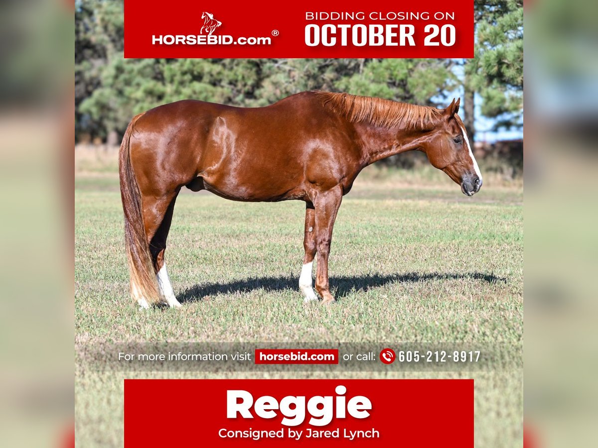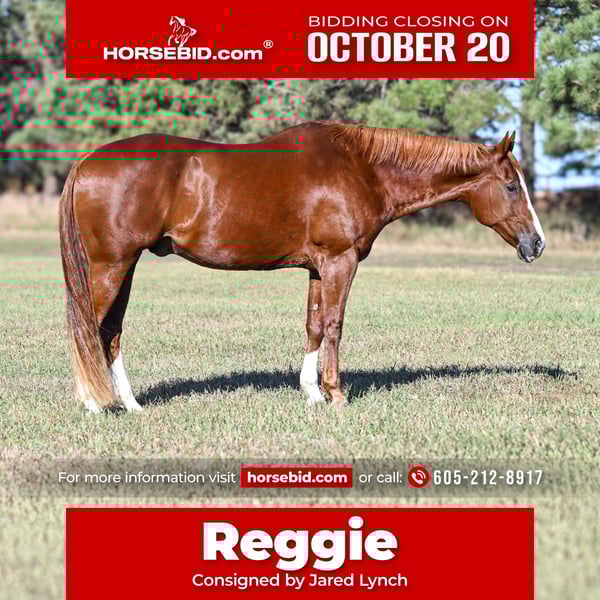 ♦️ 𝐭𝐡𝐞 𝐀𝐌𝐄𝐑𝐈𝐂𝐀𝐍 𝓕𝓪𝓵𝓵 𝓒𝓵𝓪𝓼𝓼𝓲𝓬 ♦️ Happening now thru MONDAY | OCTOBER 20th - Available EXCLUSIVELY on HorseBid's website! For more details and to register visit: www.Horsebid.com CONSIGNOR CONTACT: Jared Lynch 605-212-8917 LOCATION: Canistota, SD BREED: AQHA REGISTERED: Yes REGISTERED NAME: ONLY HOT RODDIN COLOR: SORREL HEIGHT: 15.3 AGE: 13 GENDER: Gelding "Reggie" is a big, flashy boy standing at 15.3 hh. This guy is your next all around local show champ! He has been shown locally in the pleasure and ranch classes- placing in every show he has been to. Reggie has a nice slow trot and then a beautiful extended trot as well. He will lope nice and slow and then reach out when asked. Reggie looks incredible under English tack and has been started over jumps! This gentle soul will trail ride all day long and is extremely friendly. He has been accustomed to the ranch life consisting of cattle and wild dogs. Reggie is sound and sane! Please call Jared in regards to Reggie becoming your next partner!