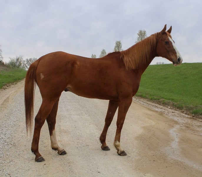 "VERFÜGBAR BEI DER ONLINE-PFERDEAUKTION UNTER www DOT MagicHorseAuction DOT com GEBOTE SIND JETZT OFFEN BIS DIENSTAG | 15. APRIL - SOFORTKAUF MÖGLICH! *Der endgültige Preis wird auf der Auktionsseite festgelegt* KONTAKTINFORMATIONEN DES EINLIEFERERS: Bar B Equine - Breanna Birks - 573-426-6558 STANDORT: Atlanta, MO Wir präsentieren CA Dashing Thunder, liebevoll Thunder genannt, einen atemberaubenden 13-jährigen AQHA-Laufpferd sorrel Wallach, der stolze 16,1 Hände misst. Dieser sanfte Riese ist perfekt für schüchterne Erwachsene oder schwerere Reiter und beweist, dass ein Laufpferd nicht weniger kontrollierbar ist! Thunder hat den Großteil seines Lebens als geliebtes Lehrpferd verbracht und bringt neuen Reitern die Grundlagen des niedrigen Springs und sowohl des Western- als auch des Englischreitens bei. Mit sauberen Beinen und beeindruckenden Hufen gedeiht er sowohl barfuß als auch beschlagen. Thunder meistert alle Herausforderungen im Gelände, von Bächen bis zu Brücken, und sorgt für 100 % Verkehrssicherheit sowie Komfort im Umgang mit Hunden und Maschinen. Er lädt sich leicht ein und aus und ist ein Traum beim Baden, Satteln, Aufsteigen und Putzen. Während Thunder beim Zäumen ein wenig Persönlichkeit zeigt – indem er einfach seinen Kopf hebt – lässt sich dies leicht mit ein wenig Longieren handhaben. Mit einem entspannten und geschmeidigen Galopp glänzt er sowohl in der Arena als auch beim gemütlichen Laufen durch Trails, wobei er es bevorzugt, zu gehen und zu traben. Nicht das auffälligste Pferd in der Umgebung, übertrifft Thunder dennoch konstant andere hinsichtlich Zuverlässigkeit und Leistung. Obwohl er hauptsächlich ein Englischpferd ist, ermöglicht ihm sein weicher Maulkorb mühelose Führung, und er kann doppelt, ohne Sattel oder nur mit Halfter geritten werden. Als das am leichtesten zu fangende Pferd auf der Weide behält Thunder eine friedliche Haltung und versteht sich gut in einer gemischten Herde. Wenn Sie einen großen, gutaussehenden Begleiter suchen, der so freundlich ist, wie man es sich nur wünschen kann, ist Thunder Ihr perfekter Partner!"