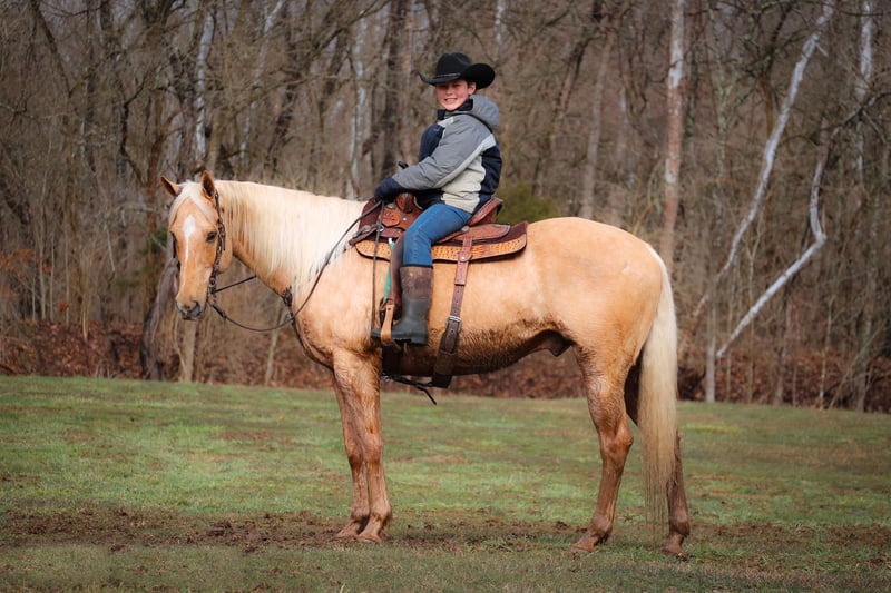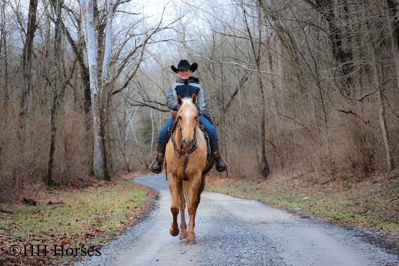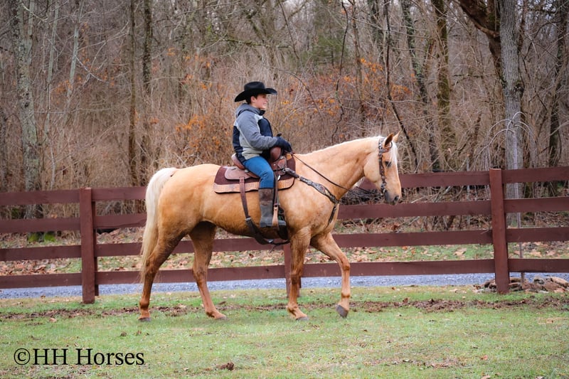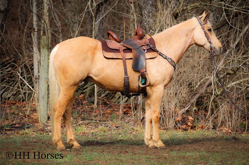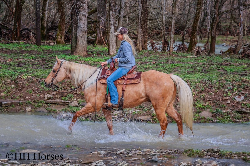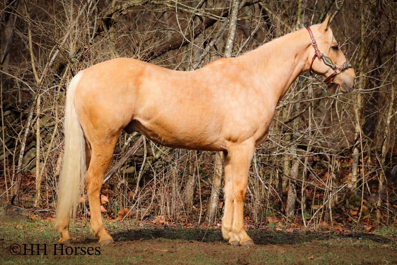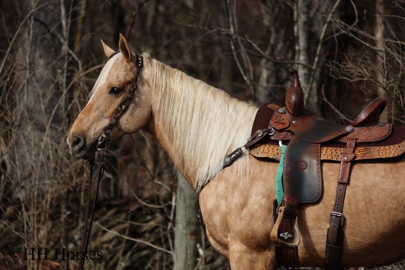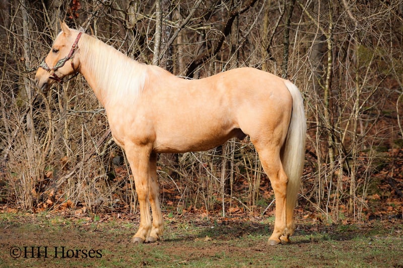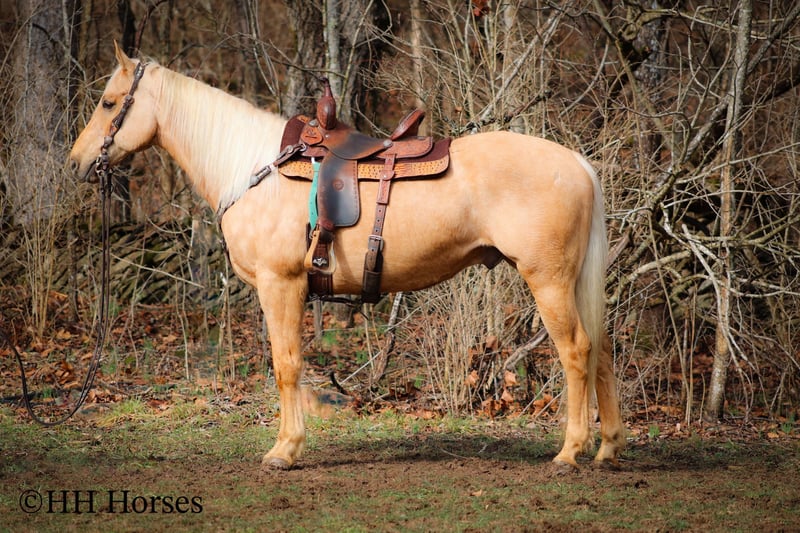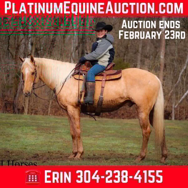 ONLINE AUCTION Place your bids at www.PlatinumEquineAuction.com Starting Bid $3500 Auction ends February 23rd, 2025 Need a new saddle? Check out White Rock Saddles on our website or Facebook! This is Mello Yello, a family friendly, quiet, and well broke 2012 registered AQHA PALOMINO GELDING that anyone can ride. He stands 16 hands tall and is well made. He has an attractive head and is a really nice mover. He is well bred and a grandson of “FRENCHMANS BOGIE” and he also has FIRST DOWN DASH on his papers. He has done ranch pleasure and will ride English or Western. He has been used around cattle in the pastures. He is quiet natured, trail rides for novice riders, and is cautious and patient. He has been ridden by youth and beginner riders. He is brave to go through water and will also ride in snow, ice, and mud. He will lope nice collected circles on the correct lead, slide stop, and back up. He moves off of leg cues and has a nice one hand neck rein. He is low headed and calm. He stands to tack, mount, groom, and handle. He gets along well with other horses and rides quietly in a group or out alone. He is not spooky and he will not go any faster than what is asked of him. He is naturally slow legged and he is more whoa than go. Excellent horse for any level rider to enjoy. Located in Flemingsburg, KY. For more info or to make a BUY IT NOW offer contact HH Horses Erin 304-238-4155. ONLINE AUCTION Place your bids at www.PlatinumEquineAuction.com Starting Bid $3500 Auction ends February 23rd, 2025 Need a new saddle? Check out White Rock Saddles on our website or Facebook!