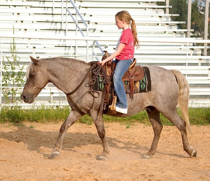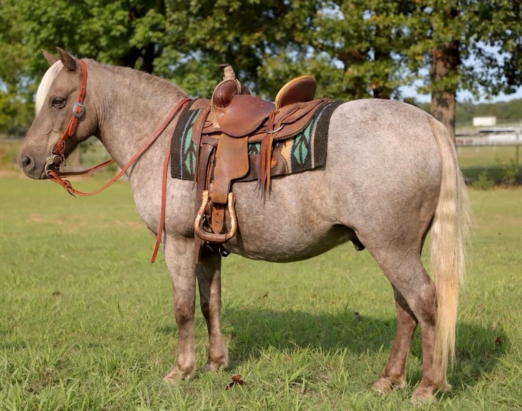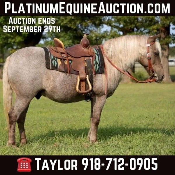ONLINE AUCTION Place your bids at www.PlatinumEquineAuction.com Starting Bid $3500 Auction ends September 29th, 2024 Need a new saddle? Check out White Rock Saddles on our website or Facebook! Let me introduce you to Sparky! The brokest and cutest pony around! Sparky is a 13 year old chocolate/roan gelding that stands 11.3 hands and is as wide as he is tall! He has spent most of his life on a large ranch here in OK! Kids have rode him all over, he has seen and done it all! He has been around tons of cattle, sheep/goats and nothing phases him! He is the perfect pony for your kids to grow up with and will last them a lifetime! Sparky has been rode at the sale barn penning back cattle, and we have also used him to push back cattle at several team roping jackpots! He will walk, trot and lope right off in the palm of your hand! He will go through any water, over any logs, bridges, through ton of people in several parades/grand entry’s and he never bats an eye! Sparky has been rode through the drive through at a local town restaurant and nothing phases him! He is broke like a big horse, and one of the brokest ponies we have ever had to offer! Sparky has been ridden english as well and did just fine! He is good with his feet, easy to saddle/bridle, load and will stand tied all day! He has no bad habits, and truly an awesome pony that any cowboy or cowgirl would love to have in their barn! He is 100% sound, sane, safe and up to date on all his vaccines and worming! He has a clean PPE on file, new coggins and ready to go! I strongly encourage you to come try him or check him out! He is located in Sallisaw, OK! I will help arrange transport anywhere! Contact Taylor Goodman 918-712-0905. ONLINE AUCTION Place your bids at www.PlatinumEquineAuction.com Starting Bid $3500 Auction ends September 29th, 2024 Need a new saddle? Check out White Rock Saddles on our website or Facebook!