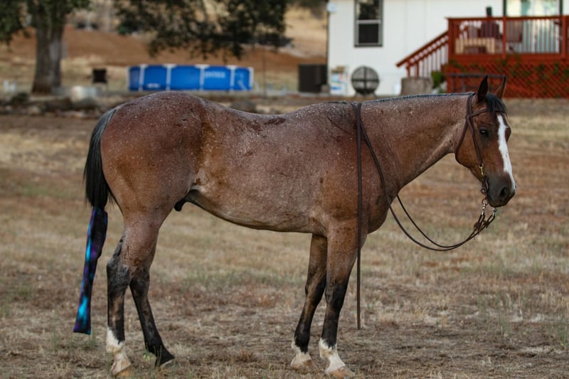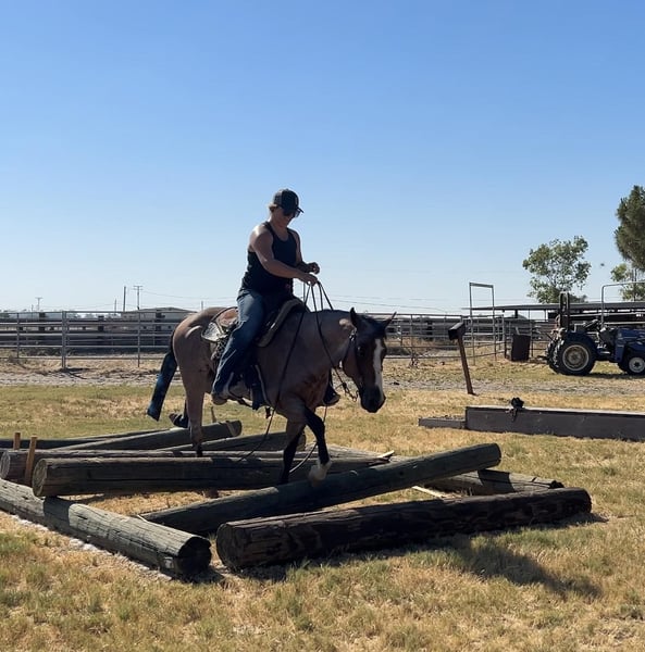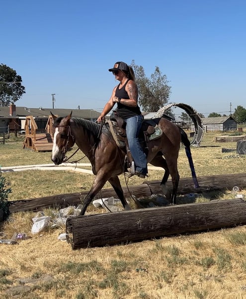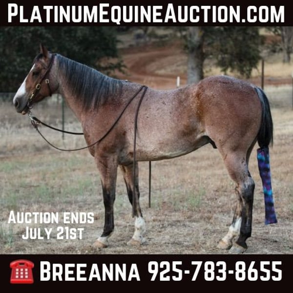 ONLINE AUCTION Place your bids at www.PlatinumEquineAuction.com Starting Bid $3500 Auction ends July 21st, 2024 Need a new saddle? Check out White Rock Saddles on our website or Facebook! If you’re looking for the perfect package, good mind, color, and loving a.j is your boy! A.j is a 13yo grade gelding standing 14hh with a nice thick build. He has great conformation, nice hip on him, short neck, soft kind eyes, and shiny coat. If you want something you will get attention on this is the one! A.j is solid on the trail, he has been hauled out extensively, he makes hauling a dream. Load easy, stands tied. Park to grab a bite to eat and he’s a happy camper waiting for you to get moving to your next destination, doesn’t matter if he’s alone or with a buddy. I’ve hauled him a couple hours, unloaded and hit a trail course he’s never seen. He takes to anything with ease. Crosses steep bridges, tarps, flags, teetering bridges, pool noodles, tires, logs, down in ditches you name it. He is a more forward mover. Saddles with ease, takes the bit, again stands tied, loves to be brushed. Good with fly spray, water. This horse wants all the attention in the world. He will stand there for hours if it means he gets loved on. First to greet you. Easy to catch. Good with others. Easy keeper. He has a full set of shoes on, my terrain is rough! A.j is also a breeze in the arena. Picks up both leads, walk trot lope, stops, backs, turns around good. Absolutely no mean bone in his body. Whatever you want to do he is happy with. If he’s unsure of something you ask him to do it and he does. He does have a short tail, although I don’t like to show it off, it is still cute, it’s full just needs to grow! While I’m picking apart his looks he did somehow chip his two front teeth they’ve been like that since I got him. Does not in any way affect his eating or anything else in any way. He prefers if you just tell him he’s pretty and not remind him. A.j truly is nothing but a pleasure to have around. He will fit into anyone’s family just fine. I have no doubt you will love him just as much as I do. Located in Valley Springs, CA. please feel free to contact me with any questions. Breeanna Frazier 925-783-8655. ONLINE AUCTION Place your bids at www.PlatinumEquineAuction.com Starting Bid $3500 Auction ends July 21st, 2024 Need a new saddle? Check out White Rock Saddles on our website or Facebook!