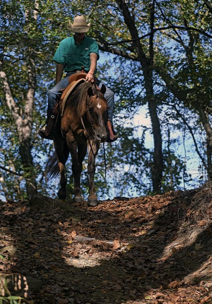 ONLINE AUCTION Place your bids at www.PlatinumEquineAuction.com Starting Bid $3500 Auction ends November 16th, 2025 Need a new saddle? Check out White Rock Saddles on our website or Facebook KBC JAZ POCO EDWARD, affectionately known as “Simba” is a 14 year old, reg AQHA, red dun gelding, standing 14.3hh, that is the kind that turns heads everywhere he goes! He is a true standout with plenty of shape, depth, and muscle, all wrapped in that rich red dun color with eye-catching highlights. He’s built the way one should be — straight, balanced, and correct — with the look of a true using horse backed by a solid foundation pedigree. He carries those old-school, proven bloodlines known for bone, brains, and heart, and he lives up to every bit of it. Simba has been used in the sale barn to push and pen cattle, load trucks and gathered cattle in rough country. He is started tracking the dummy, pulls tight to the horn, and handles a rope with ease and confidence. In the arena, he’s soft, supple, and stays collected with a good stop and a nice, correct way of traveling. He has also been ridden many, many miles outside on the trails. Thick brush, water, rocks, uneven terrain are no issue for Simba. He has been on overnight camping trips and stands tied quietly to the trailer. Simba takes everything you throw at him in stride like the seasoned professional that he is. He goes wherever he is pointed with ease and the upmost confidence. Rides out alone or in a group without issue. Simba stalls well or enjoys turn out time with other horses in the pasture, he is friendly and gets along well with the herd. He is honest, dependable, and always willing. Simba is the same every ride. This is the kind of gelding that you can truly enjoy everyday! For more info call Cole with Diamond L Horses at 479-717-3179 Located in Quitman, AR. ONLINE AUCTION Place your bids at www.PlatinumEquineAuction.com Starting Bid $3500 Auction ends November 16th, 2025 Need a new saddle? Check out White Rock Saddles on our website or Facebook