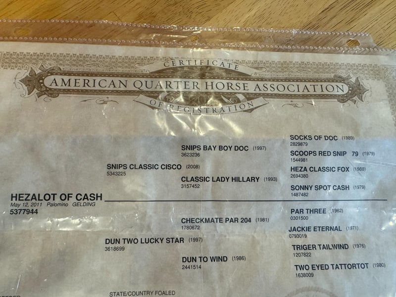 ONLINE AUCTION Place your bids at www.PlatinumEquineAuction.com Starting Bid $3500 Auction ends April 27th, 2025 Need a new saddle? Check out White Rock Saddles on our website or Facebook! Ahh Hezalot Of Cash They say blondes have more fun, well that couldn’t be more true because this palomino gelding is a blast! We call this classy ride Taxi. Standing 15.1 hands, this 14 year old registered AQHA gelding is the true definition of “the perfect package”. He has chrome, shape, substance and a fantastic disposition! He is the ideal size to tote any rider big or small and has a genuine “heart of gold”. Taxi has a great personality with impeccable ground manners and absolutely loves each and every individual he meets. He is a phenomenal trail partner and is not fazed by creeks, logs, ditches, wildlife or any other obstacles you may encounter. Taxi has been to town, seen the bright lights, and experienced most all situations. He has a rocking-chair lope and the most comfortable jog. It doesn’t take a professional to ride Taxi, he respects the bridle well with a one-hand neck rein and responds to leg cues with ease. He has seen all aspects of ranch work and is no stranger to a cow. Taxi has been used to push, gather, sort, and load cattle. He has a fancy handle with a naturally low headset, big sliding stop and flawless roll-back. He is the first to meet you at the gate and is a dream to groom, saddle, bath, clip, load, and shoe. I cannot say enough good things about this gelding, he is truly a joy to own and ride! If a one in a million unicorn is what you’re looking for then Taxi is your guy! Watch his full Youtube video, feel free to reach out with any questions, and arrange a visit or a FaceTime with Taxi! For more info contact Lacey Wilf 501-940-8704 Located in Quitman, AR, we can arrange shipping to any state. ONLINE AUCTION Place your bids at www.PlatinumEquineAuction.com Starting Bid $3500 Auction ends April 27th, 2025 Need a new saddle? Check out White Rock Saddles on our website or Facebook!