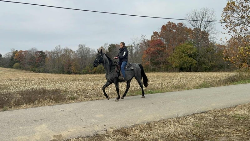ONLINE AUCTION Place your bids at www.PlatinumEquineAuction.com Starting Bid $3500 Auction ends January 11th, 2025 Need a new saddle? Check out White Rock Saddles on our website or Facebook River is a extra handsome classic blue roan gelding, reg twh, 15 year old, he is standing close to 15.2, this is very experienced trail gelding that truly has logged more trail miles than most 2 or 3 horses combined, he has been to countless big trail rides in several states as well trips out alone as well. River is nice correct gelding that knows his job and is fun to ride. He has a smooth gait and is uncomplicated to ride. River is a forward moving horse that likes to gait when ready, he is an easy keeper and maintenance free. River gets along with other horses and is truly a pleasure to have around, he does great turned out or stalled. River not only stands for mounting but will park out on command making him easier to mount. This horse has been there done that and seen the sights. If you want drama free and worry free here he is wrapped in that beautiful blue roan coat! Located in Grassy Creek, KY. For more info contact Zach with Brandenburg Stables 513-508-3684. ONLINE AUCTION Place your bids at www.PlatinumEquineAuction.com Starting Bid $3500 Auction ends January 11th, 2025 Need a new saddle? Check out White Rock Saddles on our website or Facebook