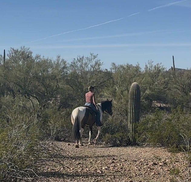 ONLINE AUCTION Place your bids at www.PlatinumEquineAuction.com Starting Bid $3500 Auction ends January 4th, 2025 Need a new saddle? Check out White Rock Saddles on our website or Facebook Flashy and sweet!! Mickey is a gorgeous 15 year old buckskin paint gelding standing a stout 15.3 hands tall wearing a size 1 shoe. Mickey is a finished head horse, he is good in the box, scores well, and knows his job when it’s time to rope. He has been hauled to jackpots and would also make a great practice horse at home. He neck reins, has a good stop, and is responsive and moves off your leg very well. He is more go than woah but doesn’t have a mean bone in him. Mickey has also been trail ridden and is happy to go out alone or with others. He’s been used on the ranch to push cattle and check fence. On the ground Mickey is a total love bug. He always has his head over his stall waiting for attention and love from his people. He stands tied, bathes, loads and hauls well. He gets along great with other horses and is even stalled next to our stallion here. Mickey would do best with a quiet and confident rider as he is responsive to your aids and not a dull type of horse. He is sound with no maintenance. Mickey does have a very mild sway back, but it does not affect his soundness or performance at all. This sweet boy is ready to be someone’s number one best friend! He is located in Marana, Arizona and we are happy to help arrange transport anywhere for him. Please feel free to call or text Claire Siebols with any questions about Mickey at 435-899-0508 ONLINE AUCTION Place your bids at www.PlatinumEquineAuction.com Starting Bid $3500 Auction ends January 4th, 2025 Need a new saddle? Check out White Rock Saddles on our website or Facebook