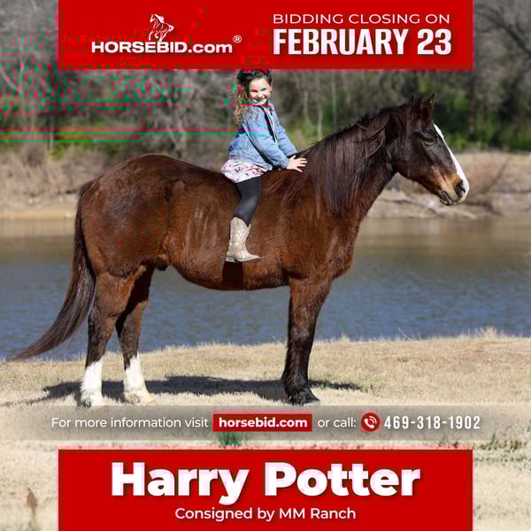 💎 𝐓𝐇𝐄 𝓓𝓲𝓪𝓶𝓸𝓷𝓭 𝐒𝐇𝐎𝐖𝐂𝐀𝐒𝐄 💎 Happening now thru MONDAY | FEBRUARY 23rd - Available EXCLUSIVELY on HorseBid's website! For more details and to register visit: www.Horsebid.com CONSIGNOR CONTACT: MM Ranch 469-318-1902 LOCATION: Forney, TX BREED: Quarter Horse REGISTERED: No REGISTERED NAME: Harry Potter COLOR: Bay HEIGHT: 14.3 AGE: 16 GENDER: Gelding 💣 ULTIMATE BOMBPROOF BEGINNERS HORSE!!! 💣 ◻️An absolutely gentle kind soul that would be the most ideal horse for first time horse owners. 🔳 A horse that is handy and broke enough to do anything you ask of him. 🔲The ultimate kids horse that they can have hours of fun with. 🔳The perfect gelding to ride down the trails or ride out on the ranch without any trouble whatsoever. 🔳The kind of horse when your city friends come down to visit you let ride. 🔲Can absolutely guarantee your safety on this one. You couldn’t make him mess up him if you tired. 🧙🏽Meet Harry Potter. Harry be just a plain bay horse, some people won’t even look his direction because he’s not flashy colored. But 80% of the people looking for a horse right now, are in fact looking for something exactly like him. He is so unbelievably kind, soft eyed, straight to the point, no nonsense type of gelding. The kind that is reliable, steady, and seasoned. And he is right in the sweet spot of his life. He is ranch branded and year branded. So we know he is a the perfect age of 16. He will still last a lifetime. Harry Potter has lived the real deal outdoor ranch life. He came off a 30,000 acre ranch in south Texas where he spent his whole life working for a living. He is a been there done that type because he has literally been there and done everything. He has been ridden across mountain ranges, hunted off of, and has packed gear through the great backcountry. (You can shoot a gun off his back.) He's seasoned on week-long camping trips and knows how to travel big country with confidence and sure footedness. He crosses water, logs, bridges, brush, and terrain of every kind like he's done it a thousand times— which he essentially has. Where most horses spook or hesitate around traffic, busy roads, trains, crowds of people, Harry doesn't even blink an eye at it. First time he ever seen a train, he stood right bedside it and wasn't bothered by it with a 6 yr old on his back. This gelding is as solid in town as he is on the trails. Ride him right down the street with cars buzzing past, trucks rolling by, and everyday commotion with confidence knowing he will not spook. He's been down Main Street, through neighborhoods, and into busy areas without a single worry. Harry has been around more cattle in his lifetime than you can imagine. He is a solid tired and true ranch horse. So if you want to rope or move your cattle around the ranch. Or let your kids learn to work cows and be safe while doing so. He is fun and easy to ride. That old fashioned broke type. You can ride him with a string around his neck. He is light and responsive. Absolutely does everything you ask him to do without hesitation. Harry is an in-your-pocket, meet-you-at-the-gate kind of gelding. He's soft, gentle, and genuinely enjoys people. You can saddle him cold, saddle him warm, saddle him after time off—he stays the same, broke and honest. Rides bareback. He rides in a halter, hackamore, or bit, it doesn't matter to him. Even if you are a complete beginner, you can ride him and enjoy him. You can’t mess up riding him or mess him up. Absolutely safe with no bad habits whatsoever. I can't say that enough. It doesn't matter if you have never owned a horse before. You can learn on this one. You can build your confidence. But if you are an advanced rider looking for safe you can enjoy him too. Stall him or turn him out-either way, he's content and an easy keeper. 🧙🏽Harry is the full package with the kind of temperament people spend years searching for. If you want a bombproof gelding that the whole family can ride, in the mountains, on the streets, work the ranch, and babysit the kids, know without a shadow of a doubt that they are safe —this is the one. Horses with this kind of experience and mileage don't come up for sale often. 🚨 He is a very easy keeper. Requires no maintenance of any kind. He can go barefoot or put shoes on him. He sells 100% sounds with no issues. He did have a pre vet evaluation done included in the pictures. If you have anymore questions about him feel free to call. We would love to visit with you about him. We can help you arrange fast affordable shipping anywhere. He is up to date on all vaccinations, worming, had his teeth checked, feet. He is ready to go to his new home.