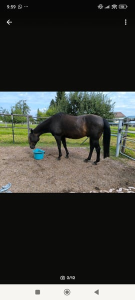 American Quarter Horse Gelding - Born on May 10, 2009 - Height: 14.1 hh (approximately 1.51 m) - Brown - Calm and well-behaved in daily handling - Has a good gait, especially outdoors in the terrain, and is easy to handle; he needs a confident handler who can provide security in all situations - Good with farrier - Knows dogs, farm animals, and everything that comes with a farm environment - Loves children! - Hacks out alone and in groups - Ridden Western in his leisure time - Currently in ground training to rebuild his foundation (this is not due to the horse's fault... I simply don't have enough time to properly retrain him!) - Familiar with being ridden with and without a saddle, as well as with and without bridle - Equipment can be purchased additionally - Preferably offered for outdoor stable turnout - Needs contact with his horse friends! Further information gladly available in person!