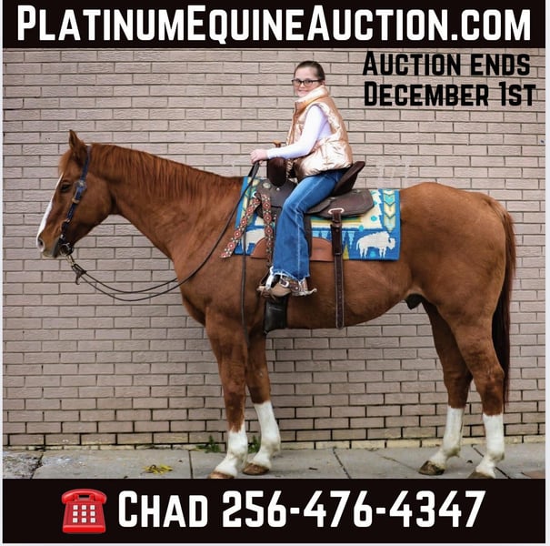 ONLINE AUCTION Place your bids at www.PlatinumEquineAuction.com Starting Bid $3500 Auction ends December 1st, 2024 Need a new saddle? Check out White Rock Saddles on our website or Facebook! Bonjo is 14 years old 15 hands tall he is the definition of a great gelding he is perfect for the smallest beginner to learn to ride and safe for grandma to take trail riding we don’t believe in perfect horses but this gentleman is as close as they come he has been in all the parades traffic safe trail rides perfect we have used him to sort and load cattle the children can throw the rope off him absolutely use him for anything Great gelding absolutely no issues don’t miss Bonjo if you are looking for extremely gentle gelding. Contact Chad Little 256-476-4347 with any questions. Located in Mt. Hope, AL. ONLINE AUCTION Place your bids at www.PlatinumEquineAuction.com Starting Bid $3500 Auction ends December 1st, 2024 Need a new saddle? Check out White Rock Saddles on our website or Facebook!