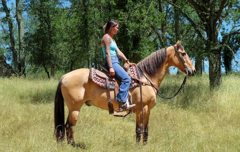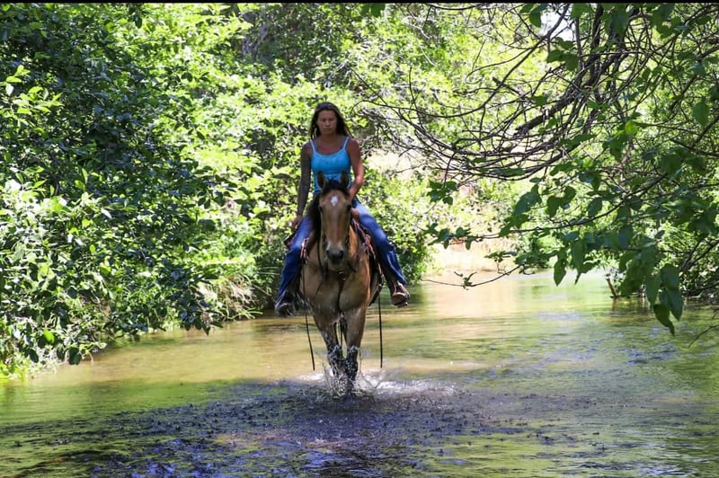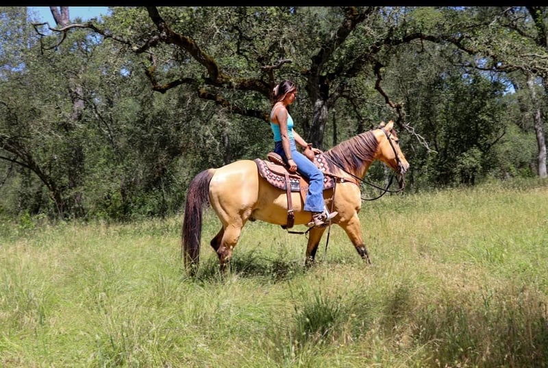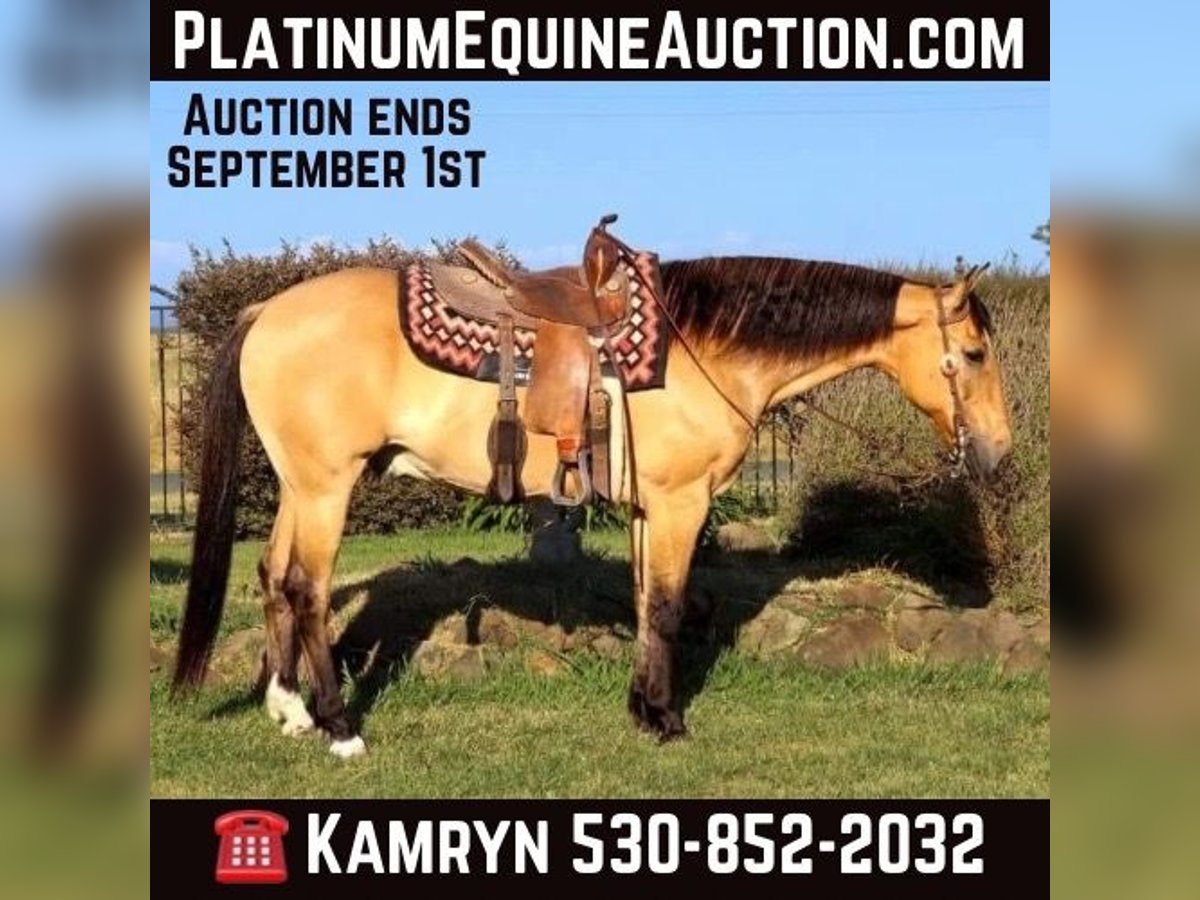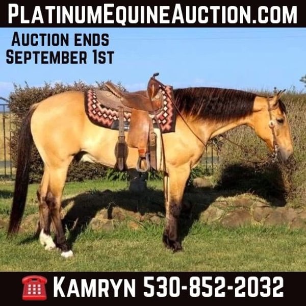 ONLINE AUCTION Place your bids at www.PlatinumEquineAuction.com Starting Bid $3500 Auction ends September 1st, 2024 Need a new saddle? Check out White Rock Saddles on our website or Facebook! Meet Akon a 14 year old 15 HH horse that turns heads and wins hearts. With his stunning buckskin coat that shines with a natural luster, Akon is the epitome of beauty and elegance. This exquisite horse is not just a pretty face. Akon is exceptional on the trails, tackling any terrain with confidence and ease. Whether it’s dense forests, rocky paths, or water crossings, Akon moves forward with determination and poise. His sure-footedness is comparable to a mountain goat, making him the perfect partner for adventurous trail rides. His extensive experience on the ranch has honed his skills, making him adept at gathering cattle even in the steepest and roughest country. In the arena, Akon is a sight to behold. He is fancy broke and knows his leads, offering a smooth, comfortable lope that is a joy to ride. His transitions are seamless, and his stops are sharp, responding directly to your seat. Akon collects his head beautifully and is light and responsive to both your hands and legs. He has also been started on barrels and poles, showing incredible potential to excel in these areas. Akon is the ultimate multi-tasker. One day he can take you on a leisurely trail ride, the next he can compete in a gymkhana, and then finish the day by gathering cows. His work ethic is unmatched; he goes all day long without a hint of quitting. Akon thrives on having a job and puts his heart into everything he does. Due to his responsiveness and quick-footed nature, Akon is best suited for an intermediate rider and up or a home with a trainer. His high level of training and sensitivity make him an exciting ride for those who can match his energy and skill. Akon is well-mannered and easy to handle. He stands patiently for saddling, bridling, bathing, grooming, blanketing, and the farrier. He loads effortlessly into a trailer, ready to go on any adventure. Akon can even be ridden bridleless and bareback, showcasing his versatility and solid training. If you’re looking for a horse that combines beauty, skill, and an incredible work ethic, Akon is the perfect choice. Don’t miss the chance to own this amazing buckskin gelding. He’s ready to be your next star, whether on the trail, in the arena, or working on the ranch. Experience the elegance, skill, and versatility of Akon firsthand. Arrange a visit today to meet Akon. Contact KW Ranch Kamryn 530-852-2032. Located in Pleasant Grove, CA. ONLINE AUCTION Place your bids at www.PlatinumEquineAuction.com Starting Bid $3500 Auction ends September 1st, 2024 Need a new saddle? Check out White Rock Saddles on our website or Facebook!