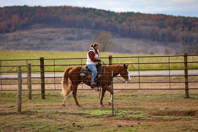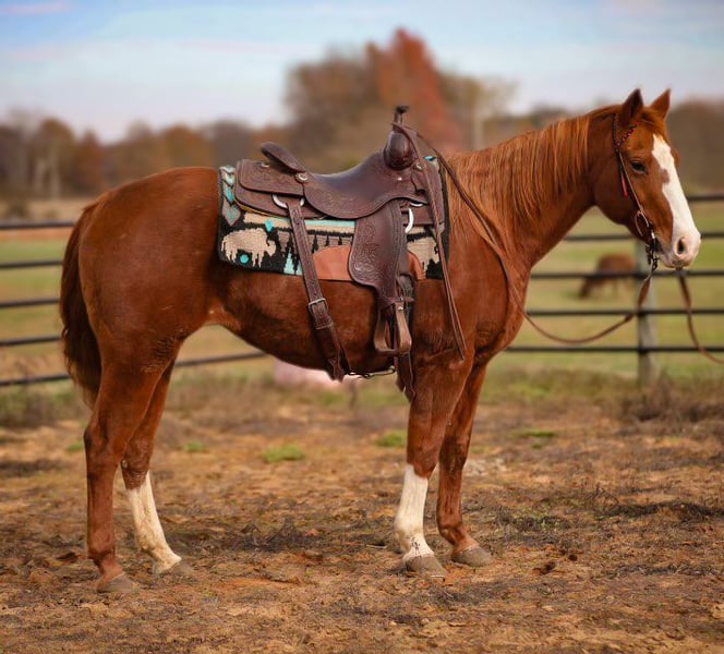 ONLINE AUCTION Place your bids at www.PlatinumEquineAuction.com Starting Bid $3500 Auction ends December 22nd, 2024 Need a new saddle? Check out White Rock Saddles on our website or Facebook! Freckles With Boone aka Sally is 15 years old 14.2 hands tall, top bred mare! She has Peptoboonsmal, Colonel Freckles and Dual Pep on her pedigree. This mare is fancy one hand broke with a big stop. We have used her outside a lot to pen and check cattle. She has had some cutting training and watches a cow very well. If you have one that you need caught, you can also go rope it off of her. She is gentle and safe for the entire family to ride and has no issues! If you are looking for a horse that will do any job, check her out! Contact Chad Little 256-476-4347 with any questions. Located in Mt. Hope, AL. ONLINE AUCTION Place your bids at www.PlatinumEquineAuction.com Starting Bid $3500 Auction ends December 22nd, 2024 Need a new saddle? Check out White Rock Saddles on our website or Facebook!