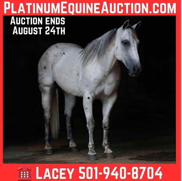 ONLINE AUCTION Place your bids at www.PlatinumEquineAuction.com Starting Bid $3500 Auction ends August 24th, 2025 Need a new saddle? Check out White Rock Saddles on our website or Facebook Meet Cool, a 2009 AQHA registered gray gelding with the kind of breeding, handle, and heart that sets him apart. Standing 14.2 hands, this gelding is handy, athletic, and broke in all the right ways. Whether you’re backing into the box, working on the ranch, or just want a horse that’s as dependable as he is good-looking, Cool is the kind that earns his keep every time you saddle him. “Cool Like That” is the product of proven genetics. He’s sired by Catalano, a son of the legendary High Brow Cat, the all-time leading sire of cutting horses with over $90 million in offspring earnings. Catalano carries on that tradition with his own offspring, who are known for cow sense, trainability, and performance grit. Cool’s bottom side is equally strong. His dam is by Smart Chic Olena, the NRHA Hall of Famer and AQHA World Champion whose offspring have won over $14 million in reining, cow horse, and versatility competition. The cross of High Brow Cat and Smart Chic Olena gives Cool a rare blend of power, precision, and calm-minded dependability. Cool is a finished heel horse that’s been hauled and used. He’s calm in the box, rates cattle naturally, and has a clean stop every time. He’s also spent plenty of time on the ranch — roping outside, sorting pairs, dragging calves, and crossing rough country without hesitation. He’s the kind you can count on for a long day’s work or a relaxed evening ride. In the arena, he rides soft and correct. He lopes beautiful circles, responds to leg cues, stops hard, and has a stylish, correct turnaround. He’s equally comfortable collected up or on a loose rein, making him a joy to ride for just about anyone. On top of all that, Cool rides bridleless and bareback — a testament to his smooth gaits, trustworthiness, and training level. He’s also been hauled to wagon races, where he handled the chaos like a pro — crowds, commotion, fast horses, and loud noise don’t rattle him. He ties to the trailer quietly, stands patiently all day, and rides the same whether he’s at home or somewhere new. Cool is easy to be around, great to shoe, and a gentleman on the ground. He gets along well with other horses and settles quickly in new places. Whether you’re a ranch hand, a roper, or just looking for that special gelding you can enjoy for years to come — Cool is the kind that gets noticed for all the right reasons. For more info contact Lacey Wilf 501-940-8704 Located in Quitman, AR. ONLINE AUCTION Place your bids at www.PlatinumEquineAuction.com Starting Bid $3500 Auction ends August 24th, 2025 Need a new saddle? Check out White Rock Saddles on our website or Facebook