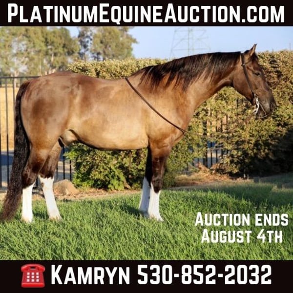 ONLINE AUCTION Place your bids at www.PlatinumEquineAuction.com Starting Bid $3500 Auction ends August 4th, 2024 Need a new saddle? Check out White Rock Saddles on our website or Facebook! 8-Ball is 15 year old 15 hands the Perfect Horse for you. This horse is drop-dead gorgeous, guaranteed to turn heads wherever you go. His stunning looks are matched only by his performance. 8-Ball is incredibly well-broke and responds perfectly to neck reins, side passes, sliding stops, and backing up with ease. He knows his leads and showcases a smooth, rocking horse lope paired with an effortless trot. 8-Ball has excelled in ranch versatility patterns, effortlessly handling bridges, poles, and gates. He’s our go-to mount in any situation, demonstrating reliability and competence in various tasks. On the trails, 8-Ball is a dream. He navigates through water, over hills, and logs with ease. He’s been exposed to all sorts of obstacles, including teeter-totters, bridges, and pool noodles, making him a confident and trustworthy trail partner. 8-Ball isn’t just impressive under saddle; he’s also fantastic on the ground. He loves being loved on and will follow you around like a loyal puppy dog. He’s always the first to greet you at the gate, showing his affectionate nature. He stands well for the farrier, grooming, bathing, and saddling. Loading him into a trailer is a breeze, making travel stress-free for both of you. 8-Ball is the full package – a horse that combines beauty, brains, and a wonderful disposition. Don’t miss the chance to own such a remarkable horse who will bring joy and reliability to your equestrian life. For more details or to schedule a visit to meet 8-Ball in Pleasant Grove, CA, please contact KW Ranch and Performance Horses Kamryn at 530-852-2032. This exceptional horse is ready to become your next beloved companion and partner. ONLINE AUCTION Place your bids at www.PlatinumEquineAuction.com Starting Bid $3500 Auction ends August 4th, 2024 Need a new saddle? Check out White Rock Saddles on our website or Facebook!