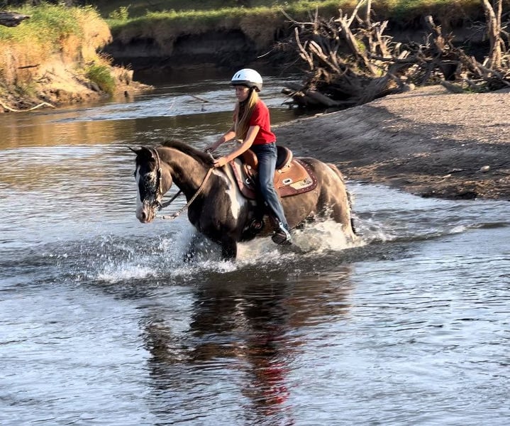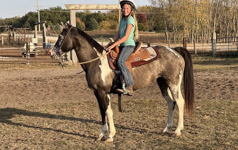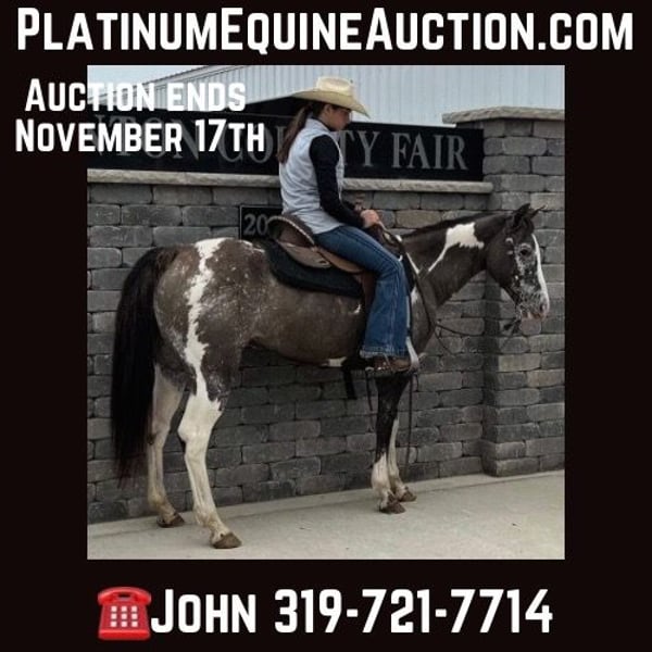 ONLINE AUCTION Place your bids at www.PlatinumEquineAuction.com Starting Bid $3500 Auction ends November 17th, 2024 Need a new saddle? Check out White Rock Saddles on our website or Facebook! Blossom is a well-trained 16-year-old, 14-hand Appaloosa mare, versatile in both English and Western riding. She has been shown in 4H by youth riders and is an ideal fit for trail riding or pleasure riding, youth or older riders. With a smooth gait, easy neck rein, and gentle temperament, Blossom has been used in a lesson program for two years and shows no spook or bad habits. She is current on vaccinations, dental care, and requires no maintenance or medication. Her calm nature makes her suitable for various settings, including trails throughout the Midwest. Blossom has excellent ground manners, stands still for mounting and farrier work, and loads easily. She is also comfortable around water, even swimming, and has carried flags in 4H grand entries. Blossom is well-acquainted with wildlife, farm equipment, and traffic, and she integrates smoothly into herds with ponies and horses. Blossom can live in a stall or on pasture, rides well barefoot or bareback, and even doubles with riders. This gentle mare is being sold as the family’s grandchildren have outgrown her, and they are seeking a loving forever home where she can bring the same joy she has provided them. Call John McPhail 319-721-7714 Located in Lisbon, IA. ONLINE AUCTION Place your bids at www.PlatinumEquineAuction.com Starting Bid $3500 Auction ends November 17th, 2024 Need a new saddle? Check out White Rock Saddles on our website or Facebook!