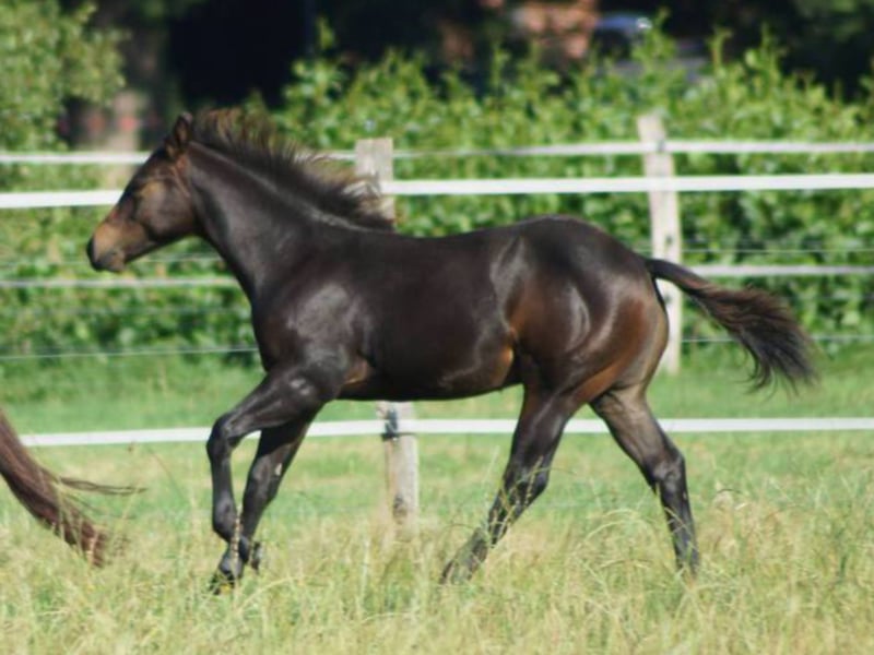Haidas Joker Cat, also known as Joker, is a stunning stallion sired by the successful cowhorse stallion Mr Joker Cat, who has achieved numerous wins with Maik Bartmann. Joker's dam is a daughter of Smartest Magician, who has been successfully shown in cutting by Jörg Pasternak. Joker is very correctly conformed, with a strong build and in the ideal black-brown color. His movements are highly athletic, and he playfully demonstrates his talent for stops, turns, and flying changes. Sire: Mr Joker Cat by SDP Joker / High Brow Cat Dam: SB Haidas Princess by Smartest Magician / Haidas Spur Pep Our foals are raised in a herd environment with a foal group, regularly dewormed, and introduced to the farrier. More information at www.brallentin-quarterhorse.de