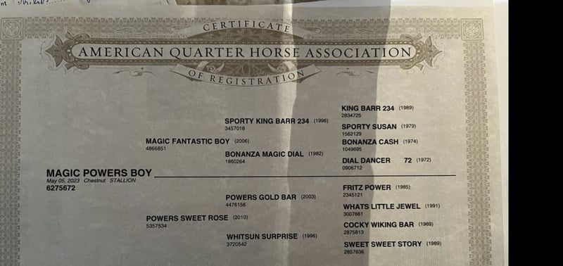 Zum Verkauf steht ein 2 Jahre alter (05.2023) Quarter Horse Wallach mit toller Abstammung. Er ist sehr gut und kräftig gebaut und wird etwa 153cm groß. Er zeigt super Bewegung und ist absolut brav im Umgang. Er kennt schon ziemlich viel, lässt sich ohne Probleme verladen, steht brav angebunden und arbeitet sehr gerne bei der Bodenarbeit mit. Er läuft bereits ohne Probleme mit Sattel, kennt Longieren und das Fahren in der Doppellonge. Aufgrund des Alters ist er noch nicht angeritten nur gut vorbereitet. Er ist ansonsten artgerecht in der Herde aufgewachsen und kennt Offenstall sowie Box. Wer einen tollen Partner zum selber Ausbilden für Freizeit oder Sport sucht, ist bei Ihm genau richtig. Krankheiten oder Allergien sind nicht bekannt. Eine AKU darf gerne gemacht werden. Für das Ausprobieren des Pferdes berechnen wir 35€. Beim Kauf wird dies gutgeschrieben. Gerne anrufen oder eine Nachricht senden 0157 36803742 Alle Angaben ohne Gewähr, Preisänderungen vorbehalten, Transport möglich, Onlinekauf möglich