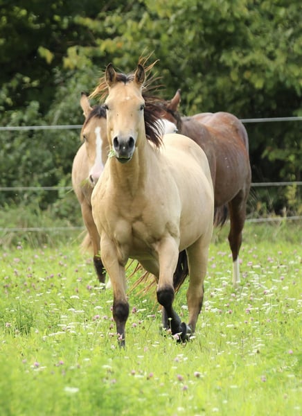 Shining Mobster SR is a super sweet young stallion with a very strong build and a very appealing character. He has grown up relaxed in a group of young stallions on extensive pastures, including hilly areas, which has made him sure-footed, robust, and healthy – just as one would imagine a young horse. Shining is halter-trained, knows the basics, and can be led and loaded calmly. He loves to cuddle and is looking for a new home with family connection and plenty of attention. 6 Panel N/N