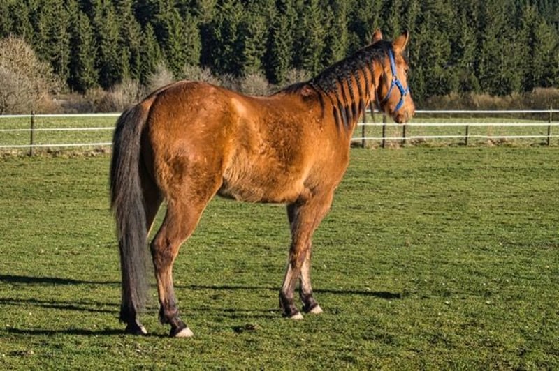 QB Riley Chex ist ein bildhübscher Quarter Horse Wallach, geboren am 13. April 2023, in der selten schönen Farbe Dun. Mit einem Foundation-Anteil von 92 % vereint er eine hervorragende Abstammung mit einem sehr korrekten, stabilen und harmonisch ausbalancierten Gebäude. Aktuell misst er etwa 150 cm Stockmaß und befindet sich noch im Wachstum. Schon jetzt überzeugt er durch seine elegante Erscheinung, seine tollen Bewegungen und seine natürliche Ausstrahlung. Riley wächst artgerecht in einer Jungpferdeherde im Offenstall auf und erhält eine hochwertige Versorgung mit Mineral- und Kraftfutter. Er ist gesund, altersgerecht entwickelt und wurde regelmäßig entwurmt. Tierarzt und Hufschmied kennt er bereits und meistert diese Termine ruhig und gelassen. Genetisch ist er 5-Panel n/n getestet und trägt GBED n/p. Besonders hervorzuheben ist sein außergewöhnlich lieber Charakter. Riley ist sehr menschenbezogen, freundlich und zutraulich. Er genießt den Kontakt zum Menschen, zeigt sich verschmust und neugierig und wird täglich gehändelt. Dabei präsentiert er sich aufmerksam, lernwillig und angenehm im Umgang. Er ist halfterführig und kennt bereits erste Bodenarbeit. Mit seinen schönen Bewegungen, seiner guten Foundation-Abstammung (Blackburn Buck Poco x Dun It Golden Chex) und seinem ausgeglichenen Wesen bringt Riley beste Voraussetzungen für eine vielseitige Zukunft mit. Ob im Sport, auf Turnieren oder als zuverlässiger Freizeitpartner - er bietet alle Möglichkeiten für jemanden, der ein junges Pferd mit Geduld, Fairness und Freude ausbilden möchte und einen echten Allrounder sucht. Abgegeben wird QB Riley Chex mit AQHA- und NFQHA-Papieren sowie Equidenpass. Zudem ist er bereits in das EWU-Jungpferdeprogramm eingezahlt. Seine Aufzucht erfolgte liebevoll und verantwortungsvoll direkt beim Züchter. Ein wundervolles Jungpferd mit viel Qualität, Ausstrahlung und Charakter, das seinem zukünftigen Menschen viele Jahre Freude bereiten wird.