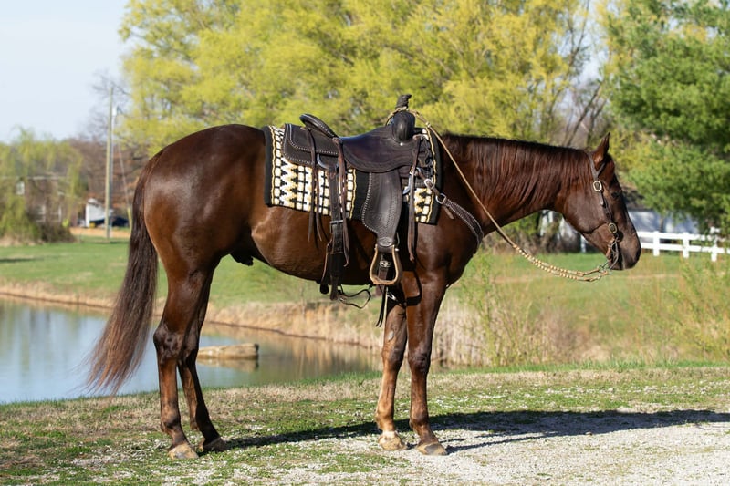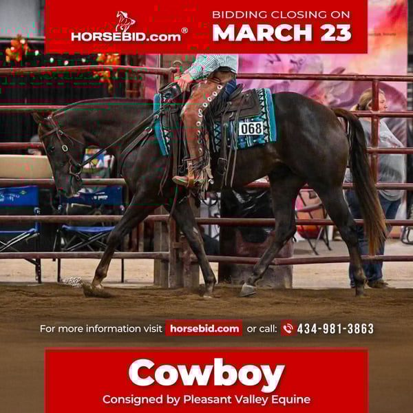 ⚜️𝓽𝓱𝓮 𝐆𝐎𝐋𝐃 𝓢𝓮𝓵𝓮𝓬𝓽⚜️ Happening now thru MONDAY | MARCH 23rd - Available EXCLUSIVELY on HorseBid's website! For more details and to register visit: www.Horsebid.com CONSIGNOR CONTACT: Pleasant Valley Equine 434-981-3863 LOCATION: Robards, KY BREED: Quarter Horse REGISTERED: Yes REGISTERED NAME: Dillons Gonna Dual COLOR: Chestnut HEIGHT: 15 AGE: 3 GENDER: Gelding Where do I even begin with this phenomenal horse? Cowboy has been with me since he was a two year old, and from day one he has proven to be something special. He was one of the easiest colts I’ve ever started, truly an old soul in a young horse’s body. From his very first ride, Cowboy has been incredibly receptive to his training and has continued to progress with a willing, level-headed attitude. He’s the kind of horse that wants to learn and always tries to please. There isn’t anything that rattles him, he has been exposed to a wide variety of situations and handles new environments with confidence. Cowboy checks all the boxes: looks, conformation, and trainability. He has a big personality and a presence that turns heads wherever he goes. He has been hauled and shown since he was a yearling and has already traveled many miles in his young lifetime. Cowboy was shown at the Iowa, & Indiana Ranch Horse Futurity this past year. Collecting points in Ranch Riding, In-hand Trail & cleaned house in the Halter. Cowboy is eligible for the IQHA Ranch Horse Futurity & Ranch Horse Extravaganza. Buy him & continue his show career. In addition to arena work, Cowboy has been extensively trail ridden and has completed a thorough desensitization and obstacle program making him a confident and versatile partner. Under saddle, Cowboy is soft, collected, and balanced. He has beautiful lead departures, fluent rollbacks, correct side passes, and smooth, comfortable gait transitions that make it feel like your riding a seasoned ranch horse. He stands perfectly for mounting, clipping, the farrier, and bathing, and is an absolute pleasure to have around the barn. Cowboy is 100% sound with clean legs and a long future ahead of him. Whether you’re looking for a horse for the arena, ranch work, trail riding, Cowboy has the foundation and mindset to excel in any direction of your choosing.
