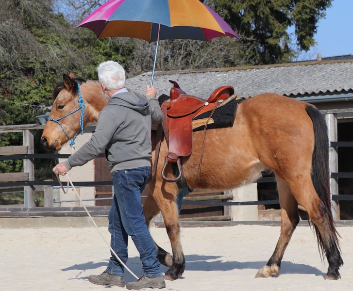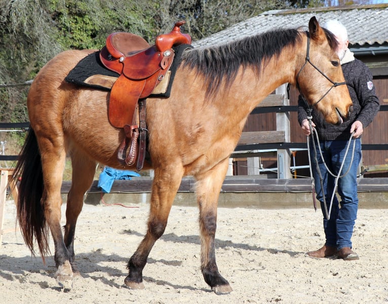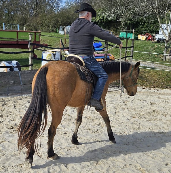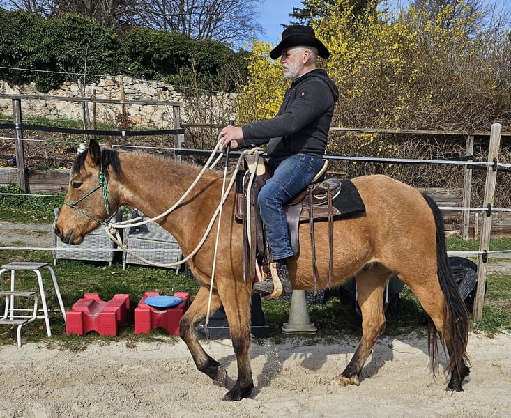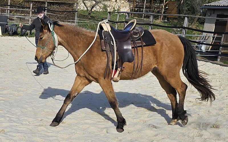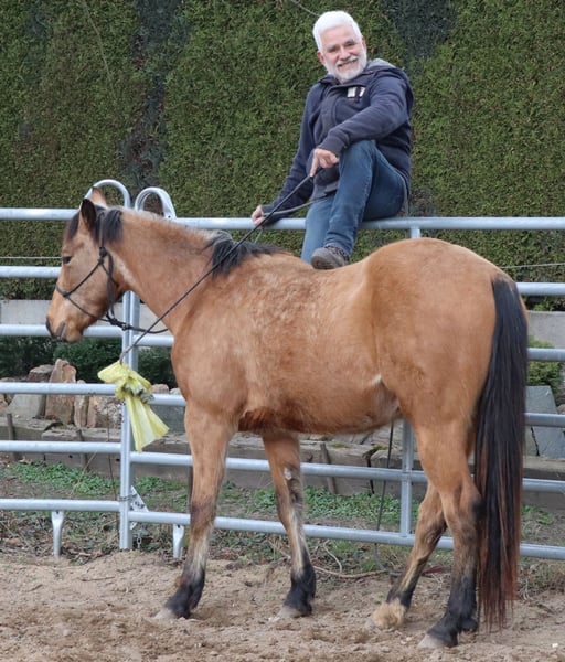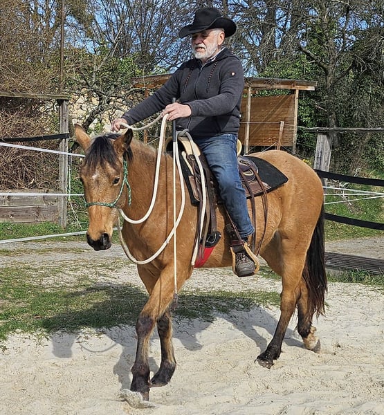 CHIC est bien construit et proche de l'homme. Son pedigree paternel pur-sang est associé à des qualités en Cutting, Reining et Working Cowhorse du côté maternel. Il profite actuellement d'une vie en grand pâturage. CHEX est éligible pour la DQHA et la Région-Futurity. Nous le préparons avec douceur à l'aide des méthodes de l'équitation naturelle pour son avenir. Il se laisse facilement charger dans le van et reste calme et posé chez le maréchal-ferrant. La mise en selle a déjà été commencée.