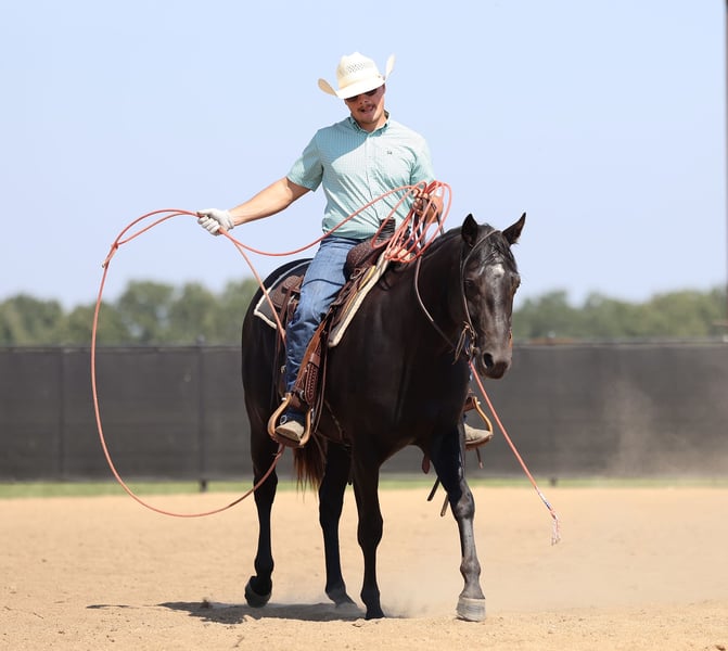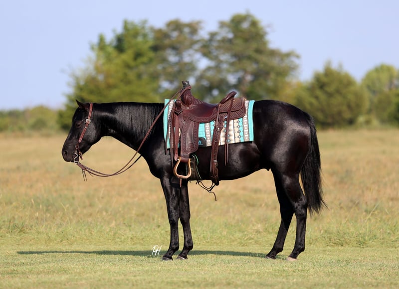 🍁𝒕𝒉𝒆 𝐅𝐀𝐋𝐋 𝑺𝒑𝒆𝒄𝒕𝒂𝒄𝒖𝒍𝒂𝒓🍁 Happening now thru MONDAY | SEPTEMBER 22nd - Available EXCLUSIVELY on HorseBid's website! For more details and to register visit: www.Horsebid.com CONSIGNOR CONTACT: Premier Horses LLC 417-834-8540 LOCATION: Buffalo, Missouri BREED: Quarter Horse REGISTERED: Yes REGISTERED NAME: Spankin Fame COLOR: Black HEIGHT: 15 AGE: 2 GENDER: Gelding Spankin Fame is one of the classiest geldings you will ever come across and guaranteed to make you do a double take. You could not put together a more perfect young gelding. He is pretty headed, nice shoulder, and big hipped. Spanky is stout made with a lot of bone throughout and hard black feet. He has a long mane and a thick tail. Spanky is sired by Sycamore Lane LTE: $21,000+ and PE: $350,000+ with limited foal crop. Sycamore Lane is also a full sibling Woodbridge PE: $650,000+. His dam, Kayces Moon Candoo, is a daughter of Freckles Candoo who qualified for the AQHA World Show in 5 separate events. He is the perfect cross that showcases athleticism, brains, and flawless confirmation. He is Future Fortunes, BRIF, VGBRA, Colorado Classic, and Select Stallions eligible. Spanky has been in our family since just right before he turned 1 year old, so we have owned him just shy of 2 years. What an absolute joy he has been to raise and get to this point. One word that I’ve continually associated with him is, easy. Everything I have thrown at him he takes it in stride, no matter how ridiculous it is. As a yearling I would pony him off seasoned horses or off the side by side. I took him across the obstacles, loaded and taught him to back out of the trailer, and handled him on a weekly basis. All of that work has transitioned beautifully since he has been started under saddle and ridden consistently. Spanky has a smooth trot and most comfortable rocking chair lope, picking his leads up easily. He naturally wants to stop deep and on his hind end. He is starting to turnaround,side pass, and will break at the poll. Spanky goes over any and all obstacles such as; teeter totter, bridges, logs, tires, etc. Go check the mail or head down the road on him, he is traffic safe. He goes through water and is patient going down embankments. Not much phases him, he is very much an old soul. Spanky is very personable and loves people, especially if you have treats then he is your best friend. Super easy to catch, he lives out on 15 acres of pasture, so I usually take the side by side to catch him. He gets along good with other horses. He is an easy keeper and stalls good. He is UTD on dental, coggins, trimming, and worming. Clean and current X-rays done on 09/10/2025. Spanky has been well loved and in the best of care. He is going to make a top notch performance gelding one day, no matter which direction you want to go. Spanky could do barrels, roping, ranch, trail, etc. He has so much try and is very talented. The sky is literally the limit with him and we are proud to offer him, so do not miss your chance!